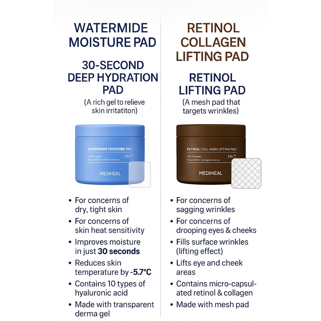 [Mediheal] Daily Treatment Toner Pad Box of 90-100pcs-TEATREE/WATERMIDE/COLLAGEN/VITAMIDE/MADECASOSIDE/RETINOL No Box