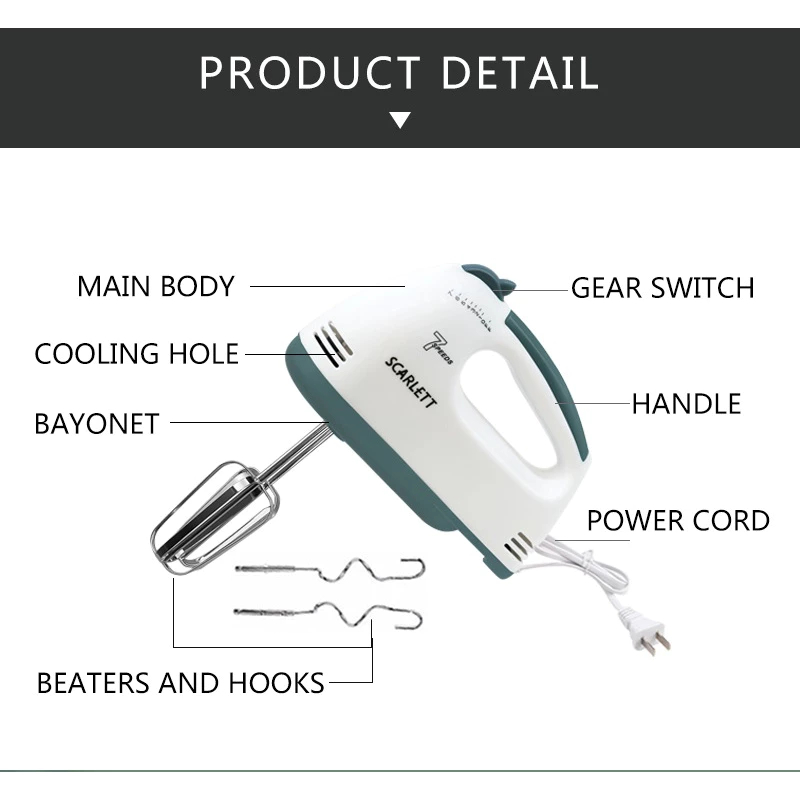 NEW ARRIVAL Scarlett Portable 7 Speeds Professional Baking Hand Mixer