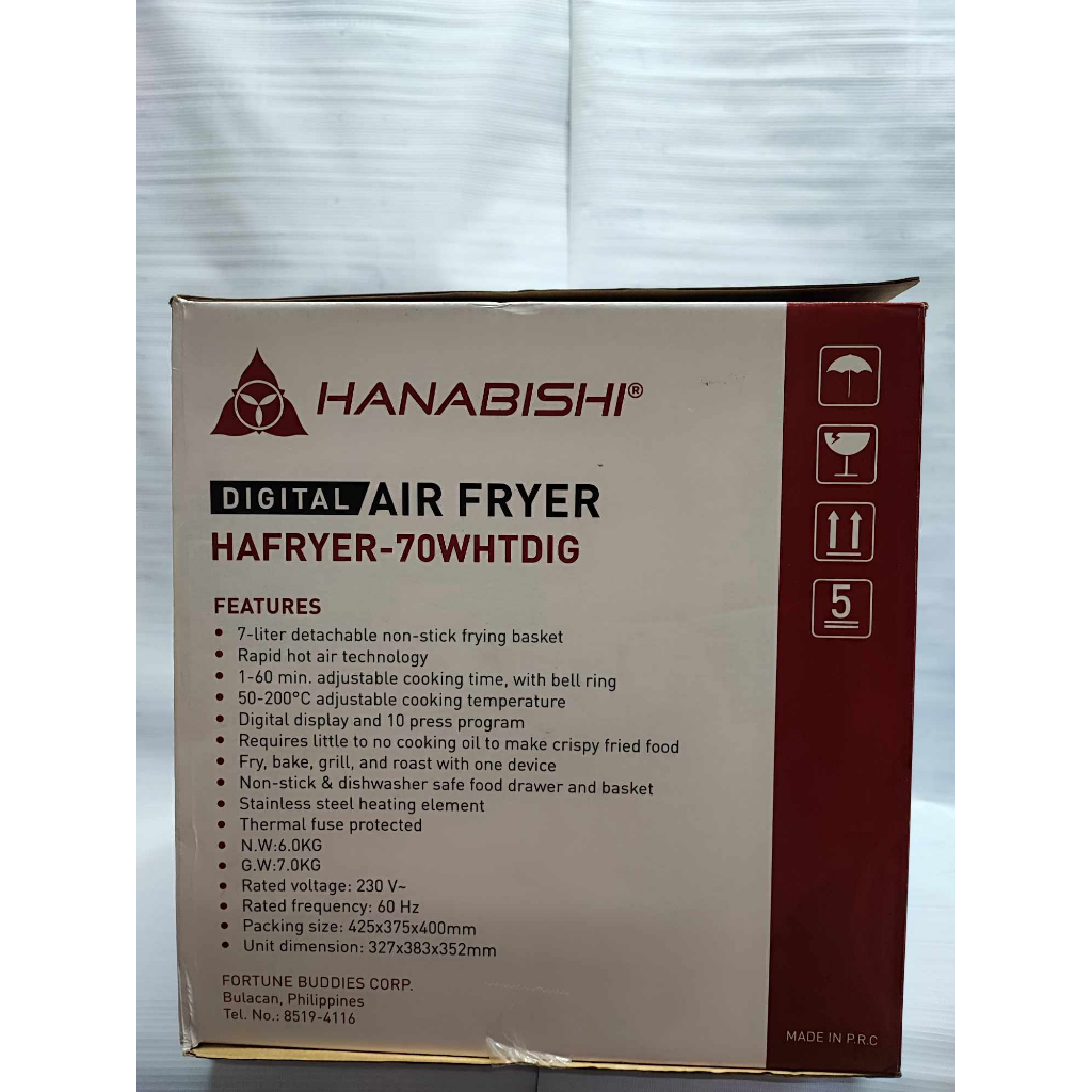 New!! Hanabishi Air Fryer Digital 7L White HAFRYER-70WHTDIG (Houseware Express)