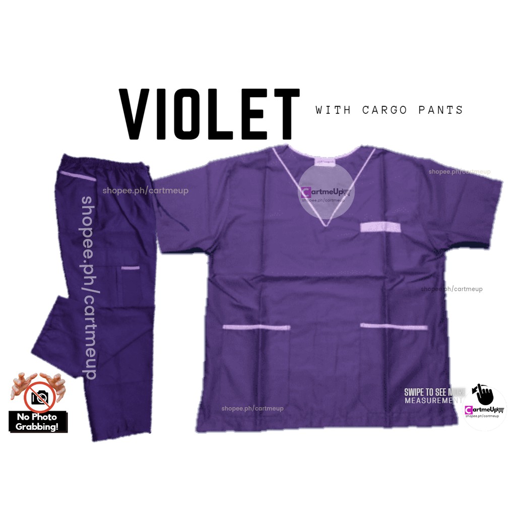 (CART-Z) Scrub Suit Set with Piping & Cargo Pants (Violet) [LCC]