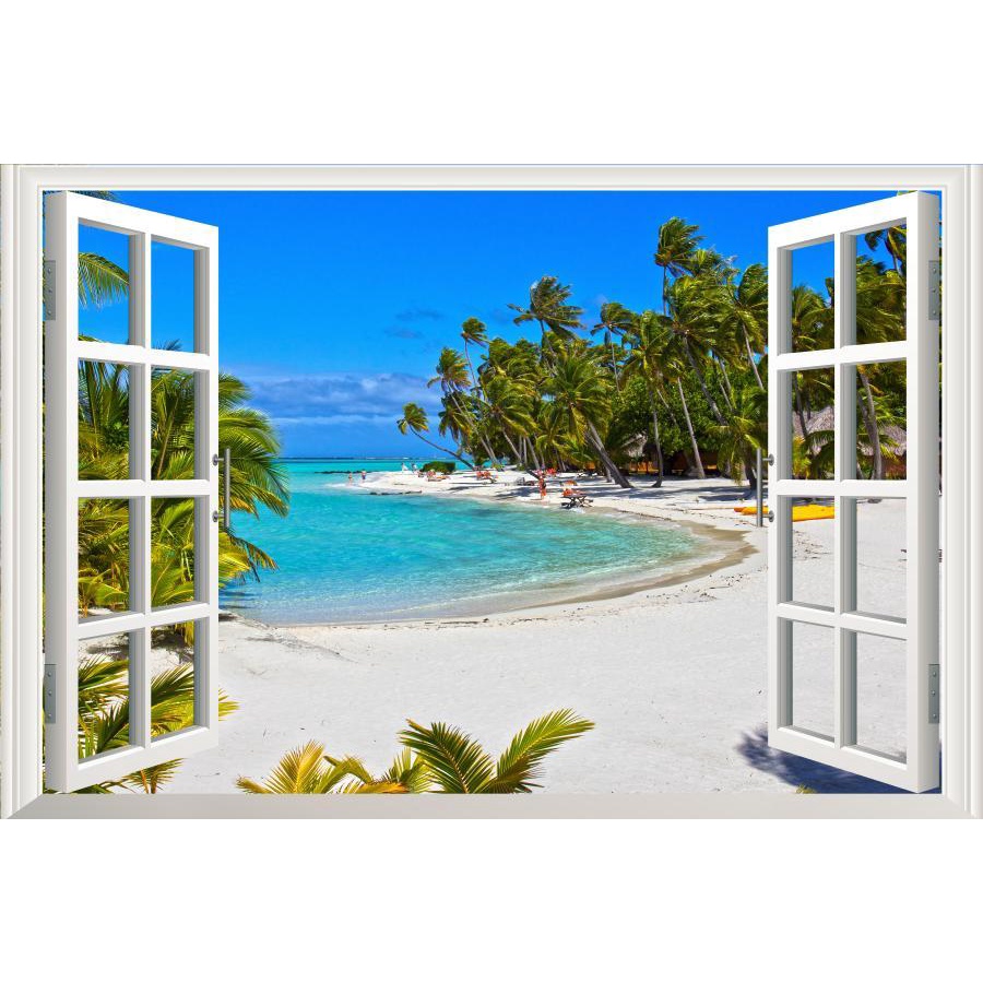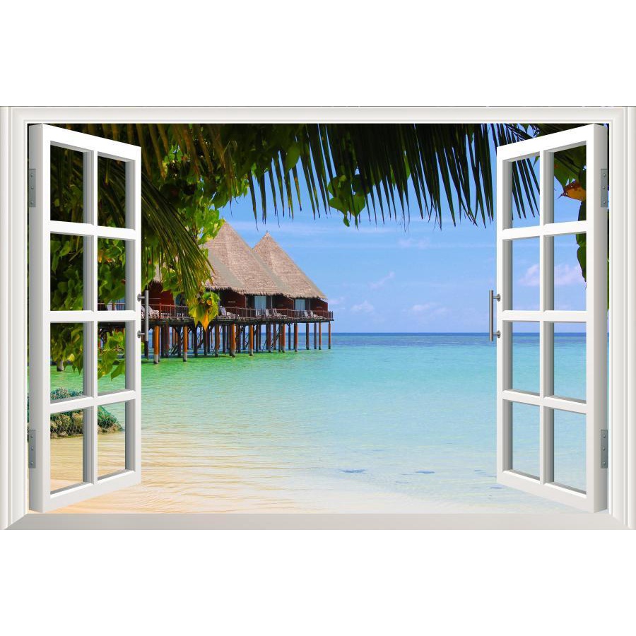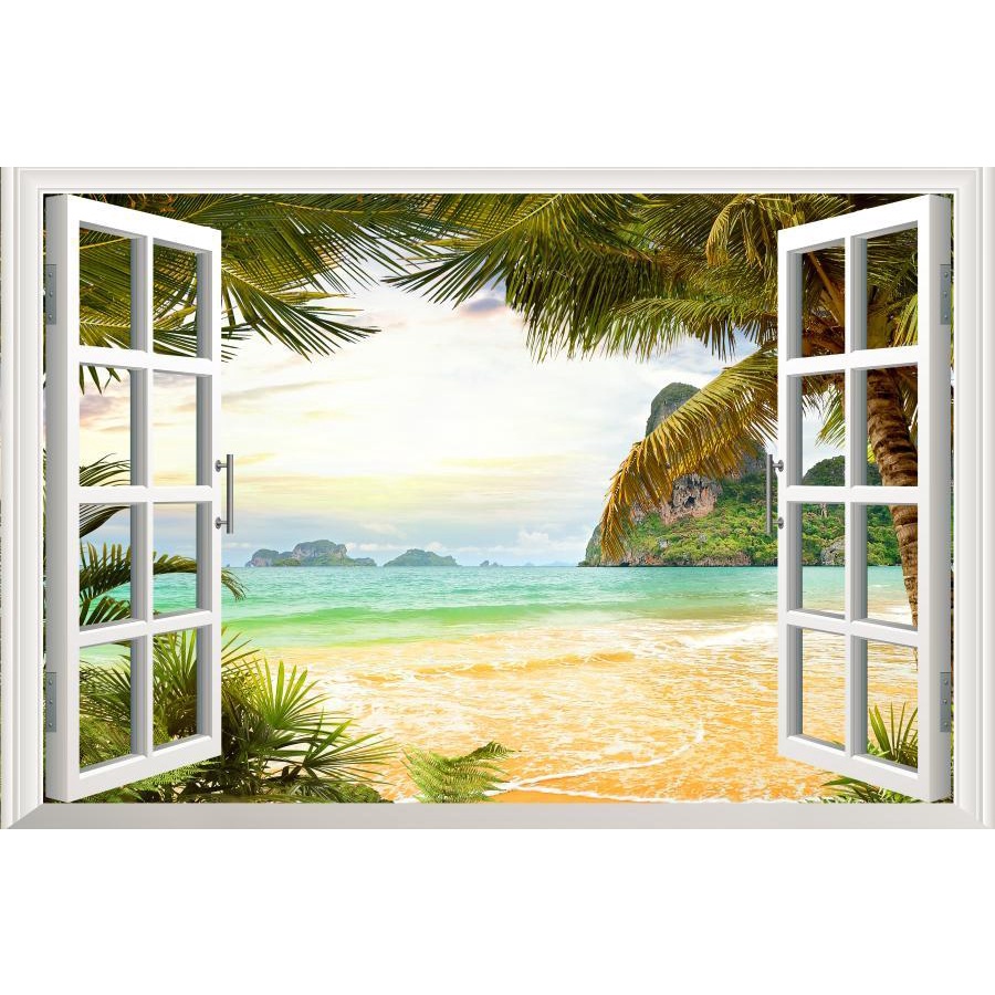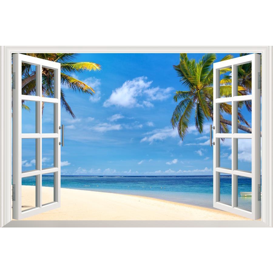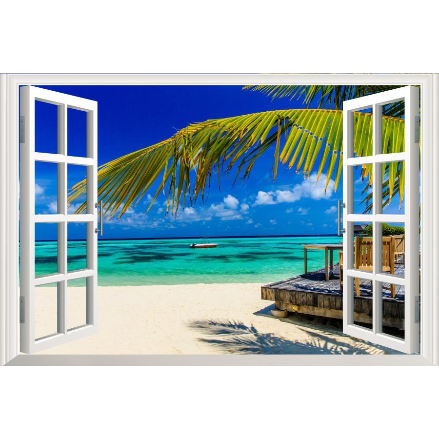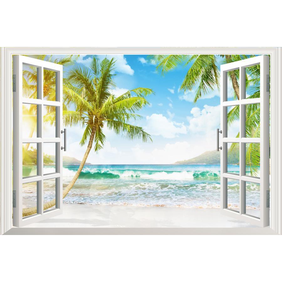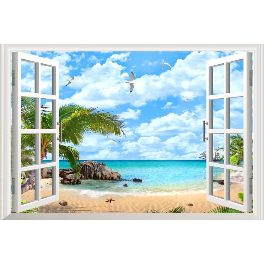 Sea 3D Window View Sticker Wall Art Vinyl Decal Summer Beach Landscape Kitchen Decor Wallpaper Poster Picture