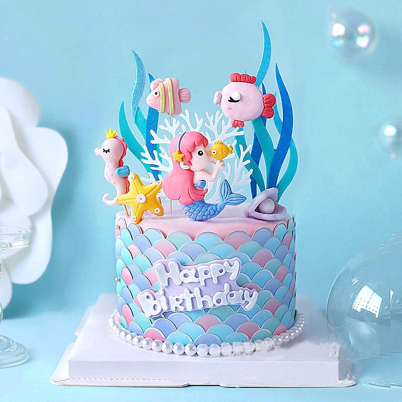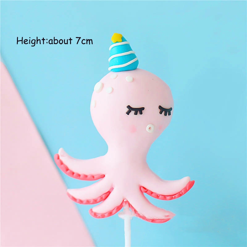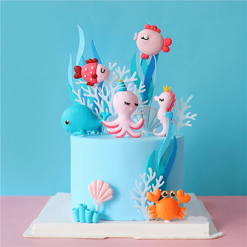 Sea Animal Cake Topper Mermaid Theme Cake Decoration Ocean Octopus Seahorse Crab Whale Soft Ceramic
