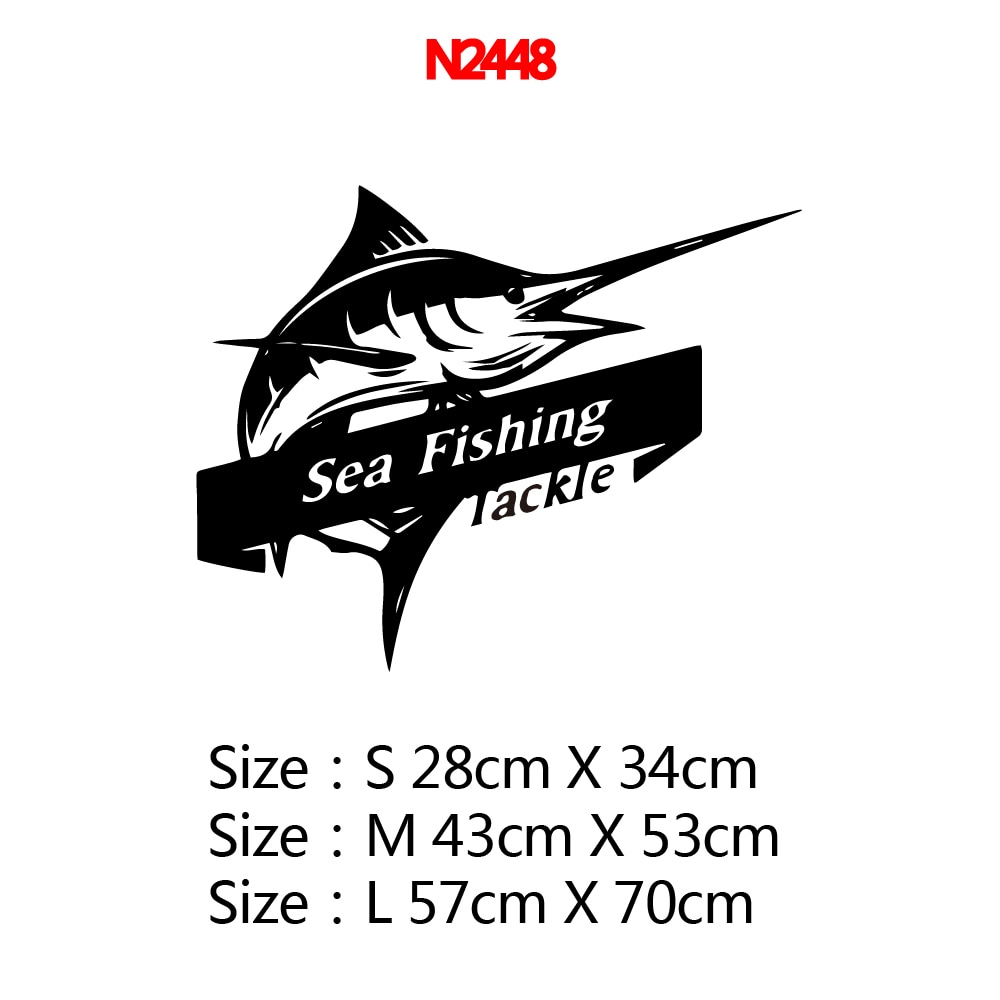 Sea Fishing Tackle Swordfish Marlin Sticker Decal Bucket Tackle Shop Fishhook Sticker Fish Tank Boat Box Car Vinyl