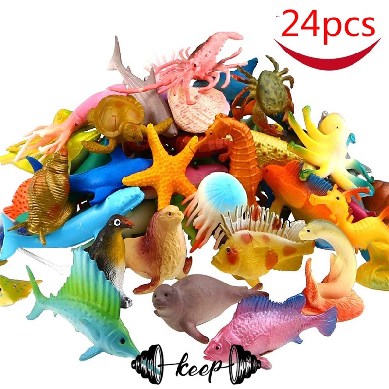 Sea Ocean Animals Pool Toys Set 24 Pack Turtle Octopus Shark for Children Education