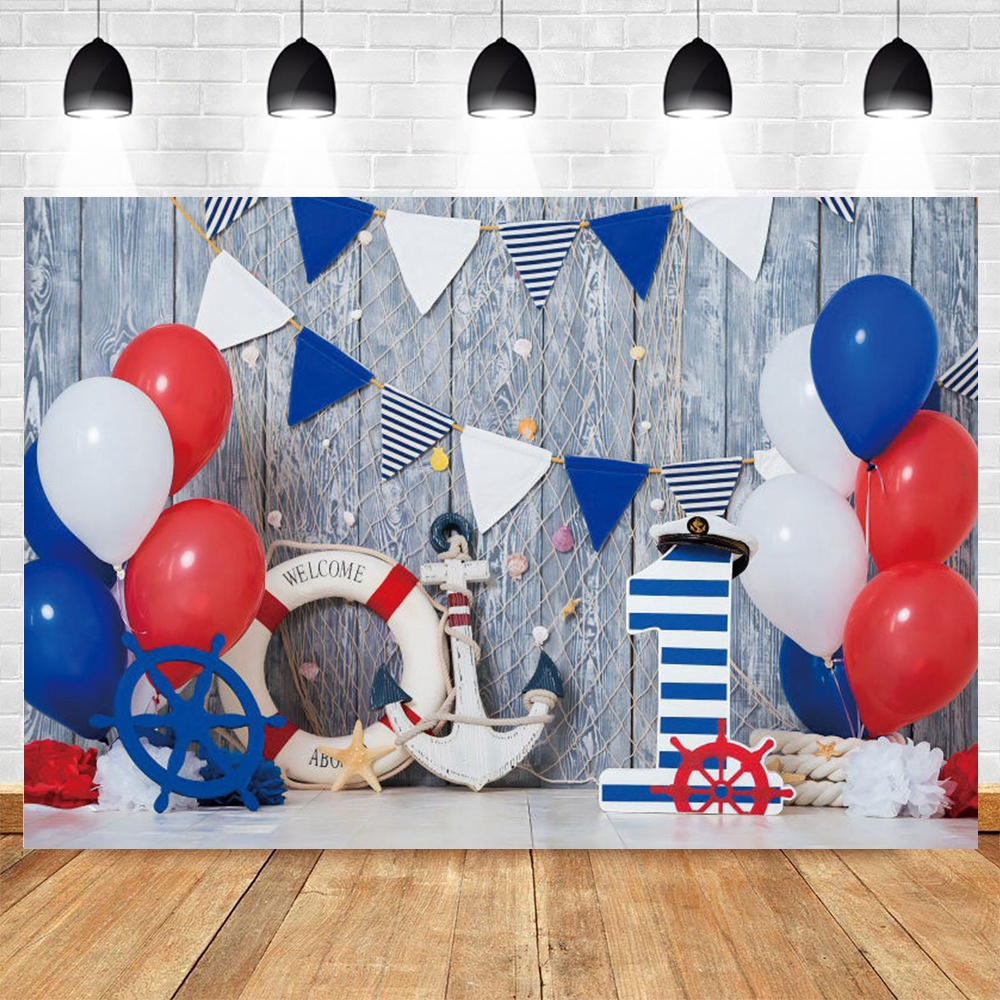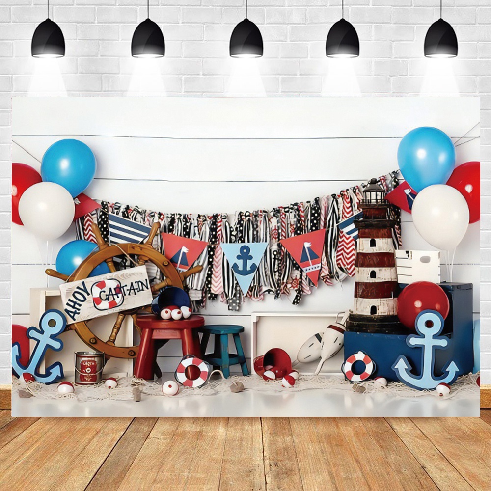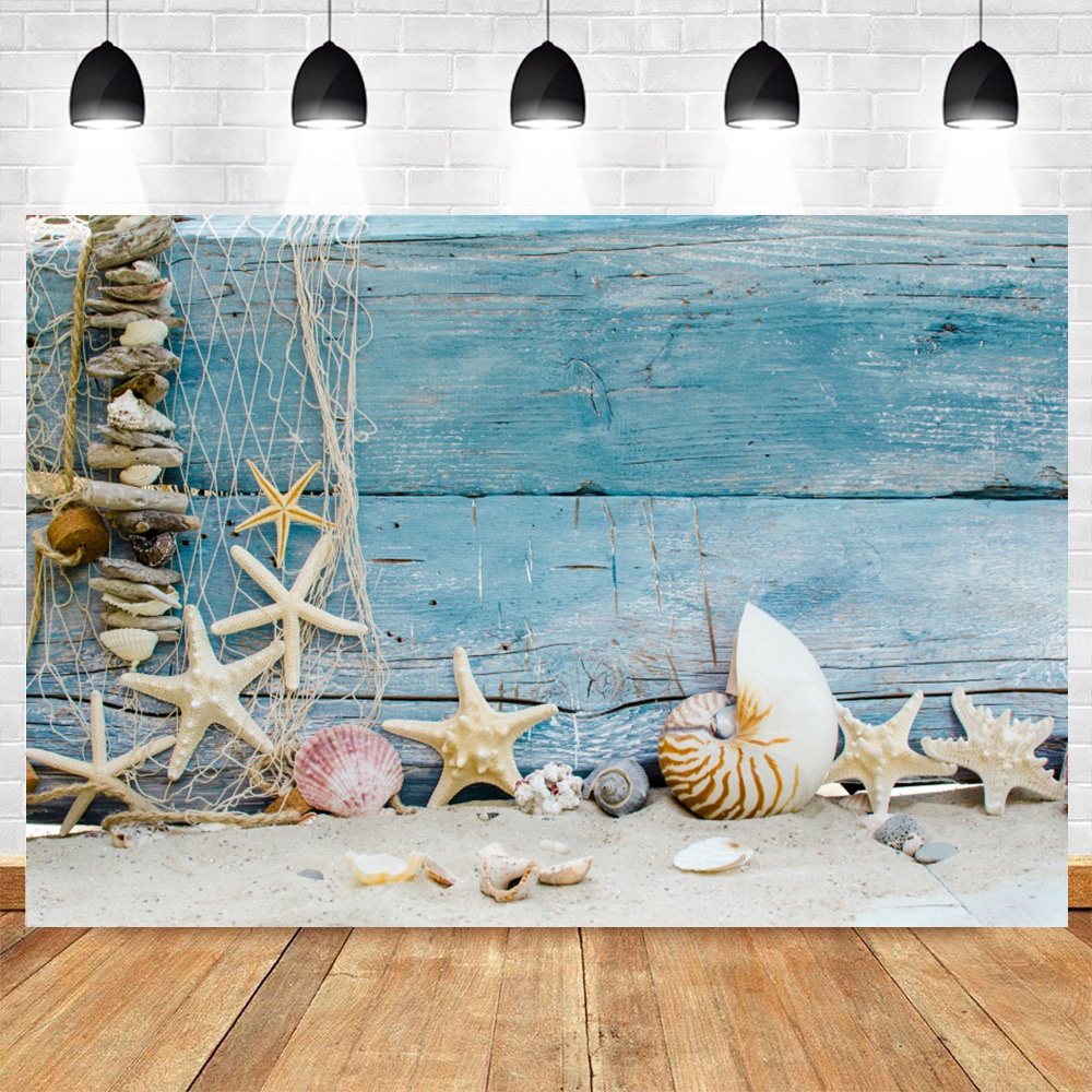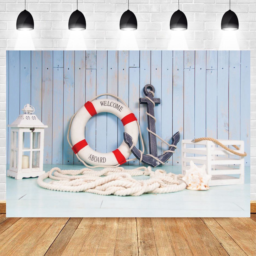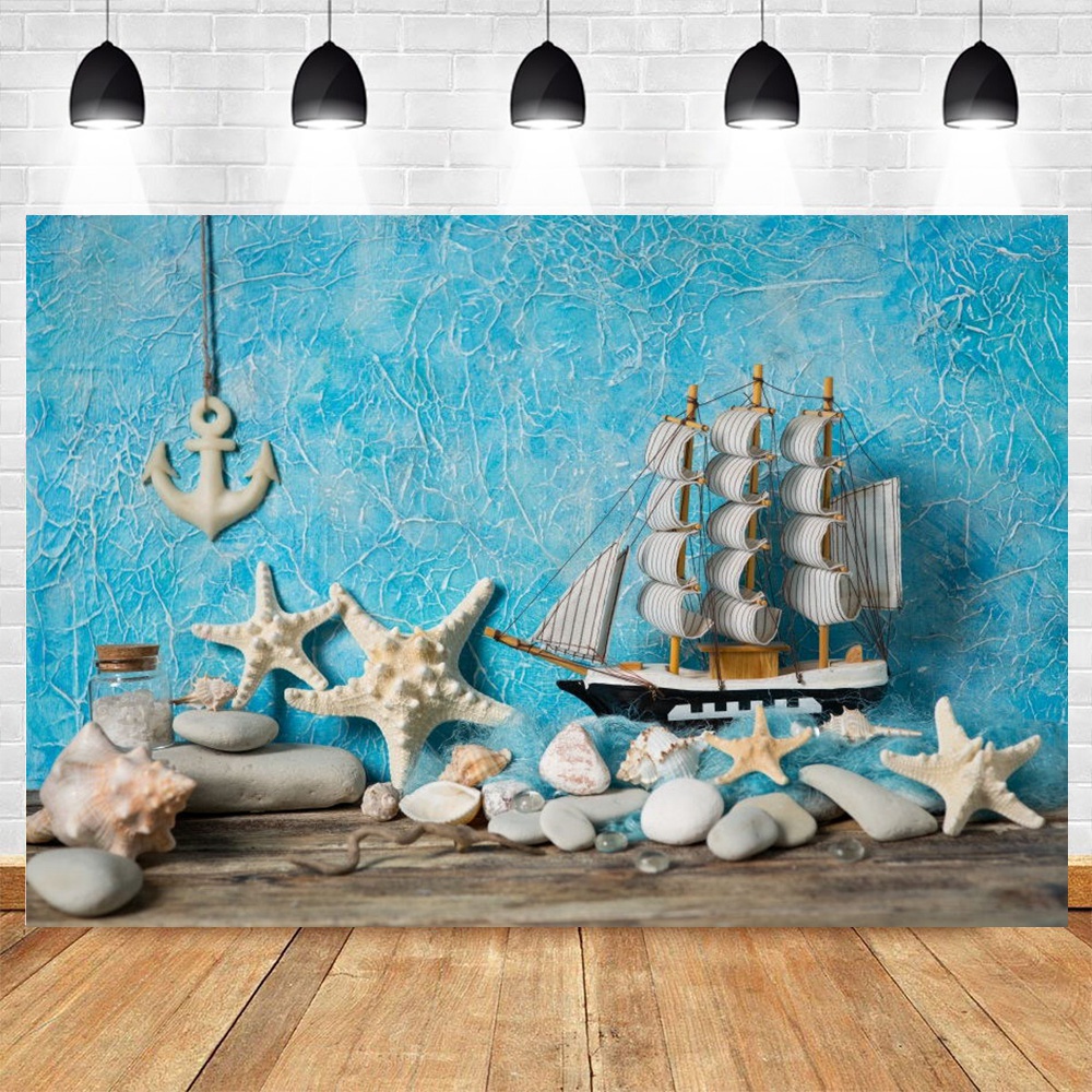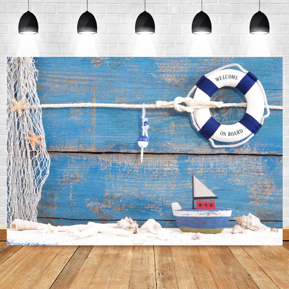 Sea Theme Nautical Rudder Starfish Backdrop Wooden Splint Board Sailor Photography Backdrop Baby Portrait Cake Smash