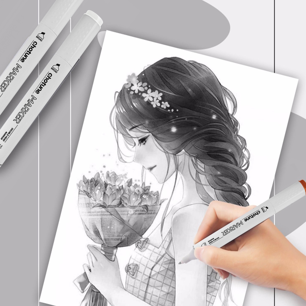 Seamiart CHOTUNE 12color Warm Cool Grey Colors Twin Tips Marker Pen for Anime Figure Drawing Art Supplies