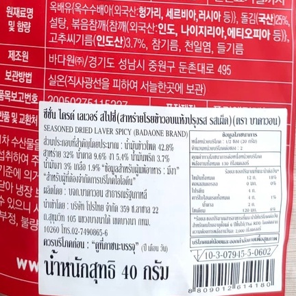 Seasoned dried laver spicy (Badaone brand)