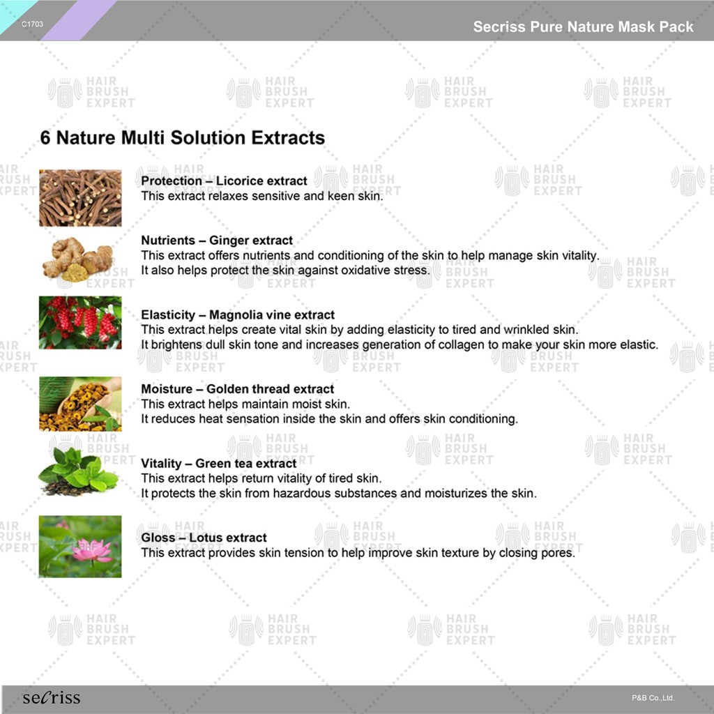 Secriss Pure Nature Full Face Facial Mask Sheet (1 Piece Random Mask)