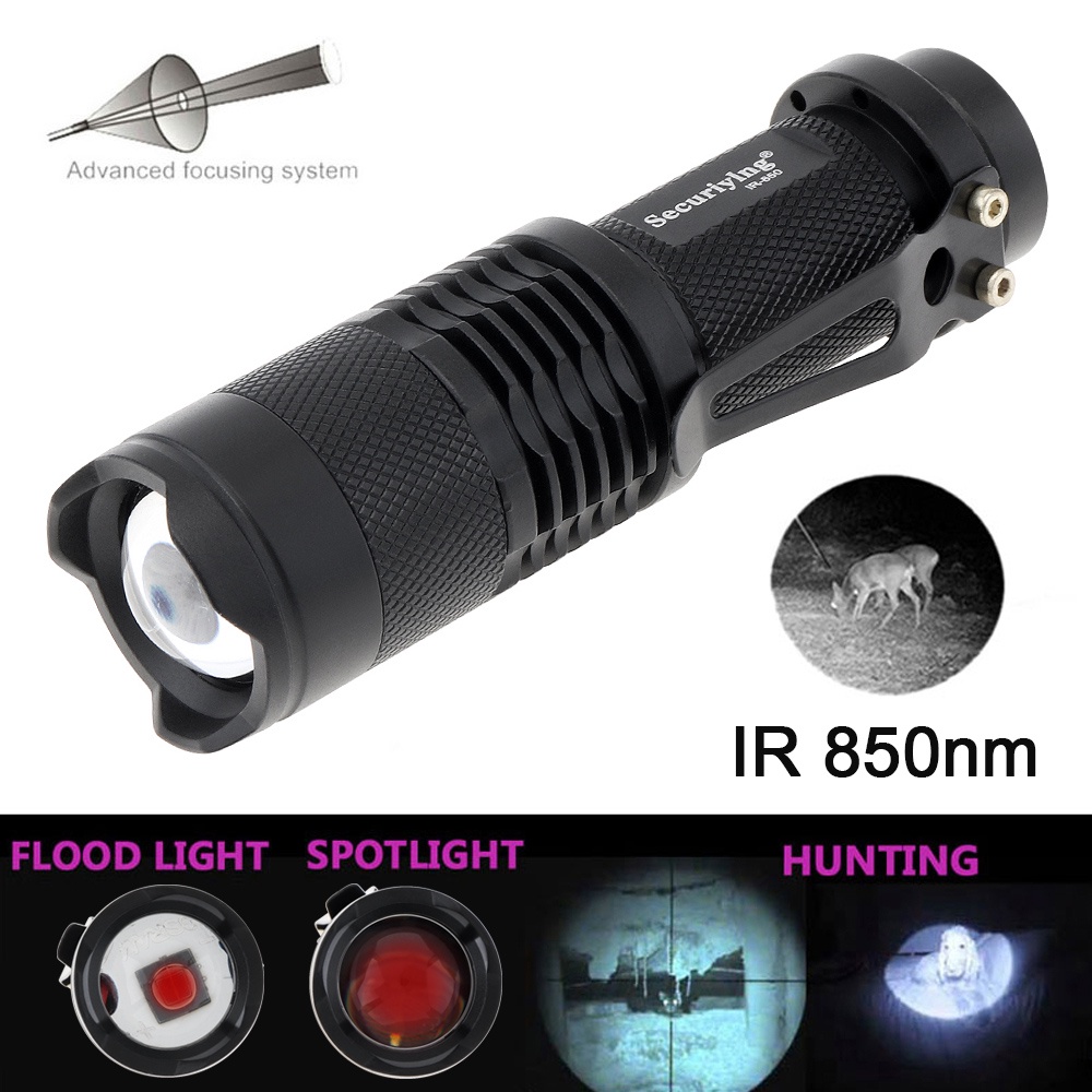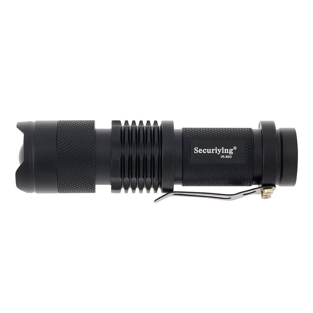 SecurityIng IR Hunting Flashlight Zoomable 850nm LED Light Infrared Radiation IR Night Vision Torch Use 14500 / AA Battery with Stainless Steel Clip Pocket