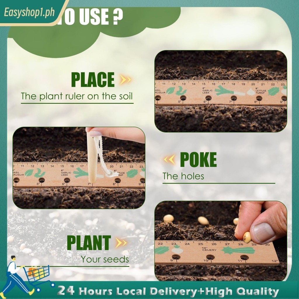 Seed Ruler and Dibber 30 Inch Wooden Plant Ruler Wooden Practical Plant Seed Spacing Ruler Portable Planting Ruler with Holes Seeding Dibber Easy to Use Gardening SHOPTKC5356