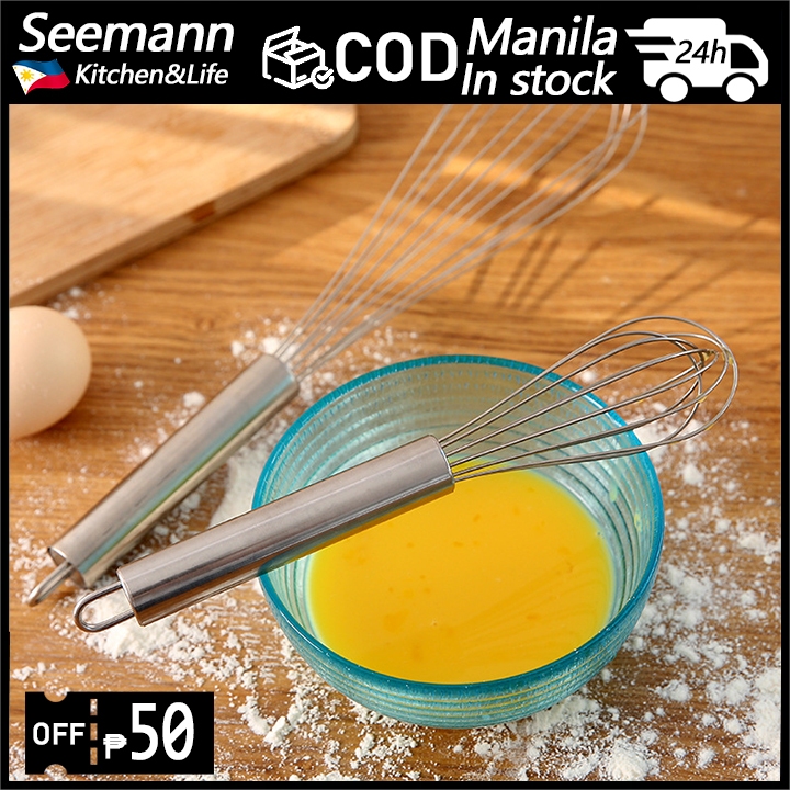Seemann Stainless Steel Kitchen Whisk Tools Wire Whisk Flat Egg Beaters Mixer Whisk Stainless Steel Kitchen Tool Multifunctional Rotary Manual Egg Beater