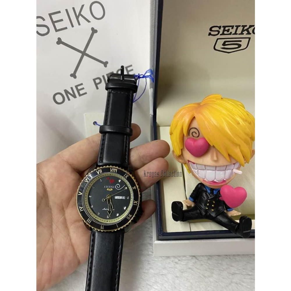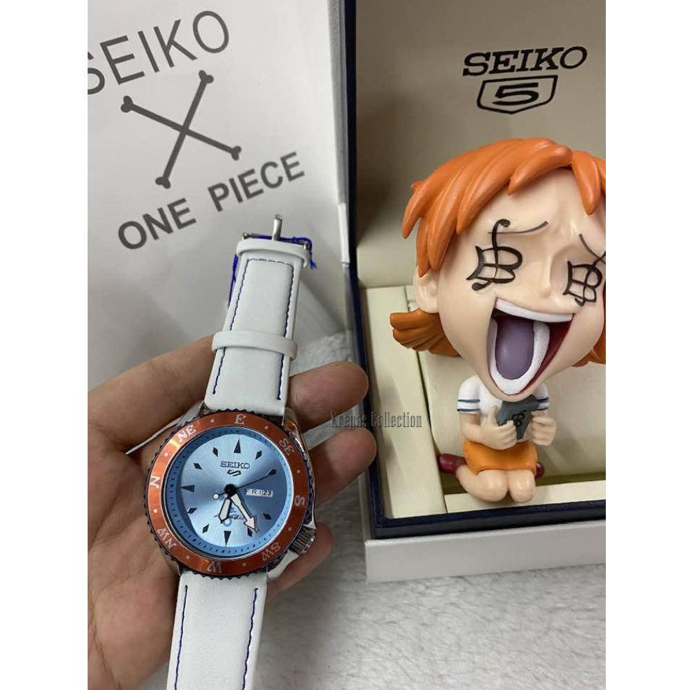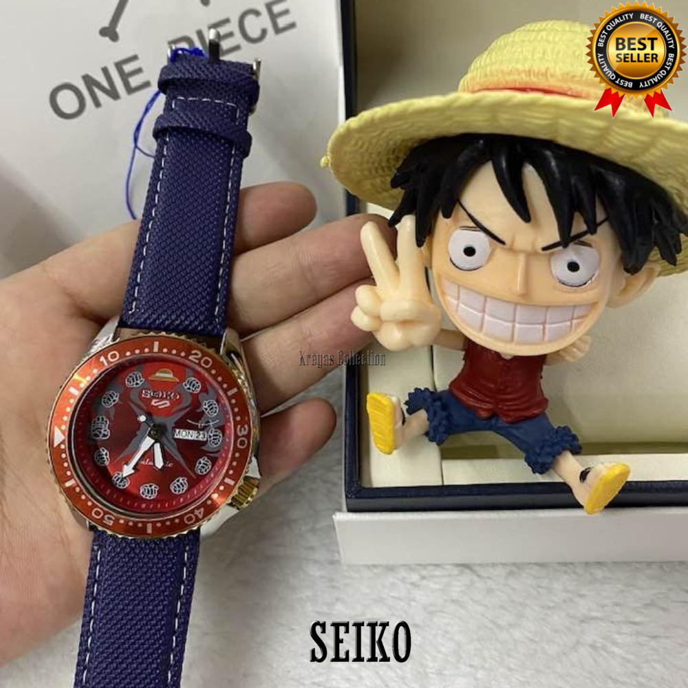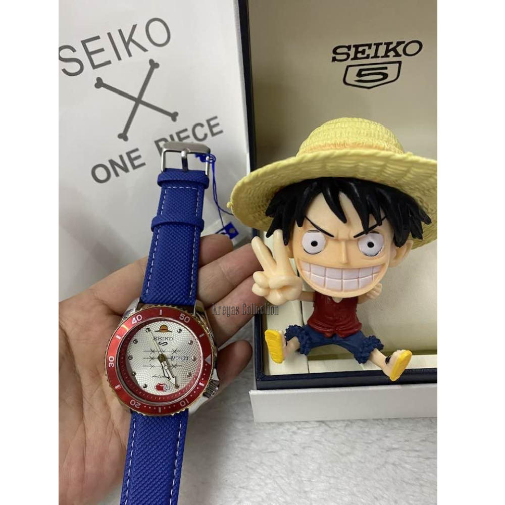 Seiko 5 Sports SRPF Day & Date One Piece LE LUFFY Red Dial Dark Blue Leather Strap Watch for Men