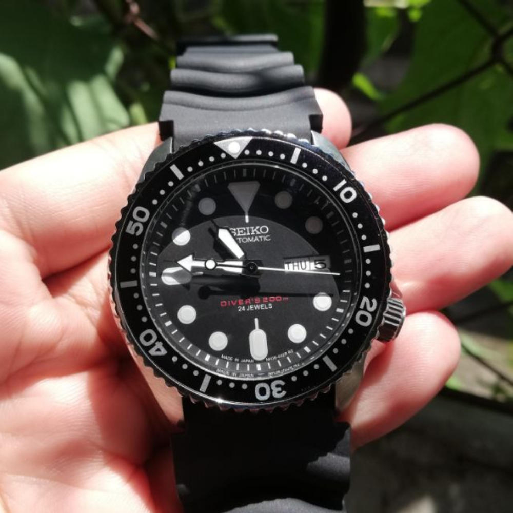 Seiko Divers Luminous Automatic Hand Movement Day & Date Display Black Dial Resin Band Watch For Men