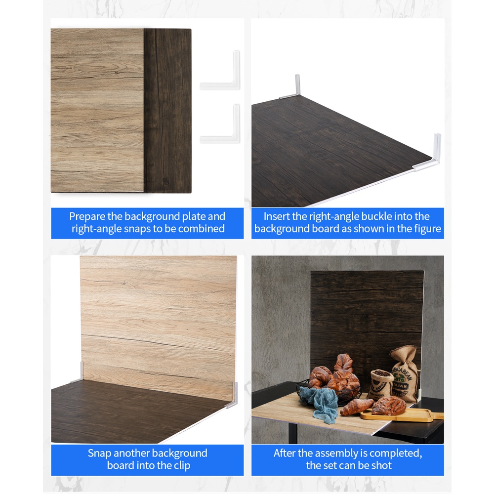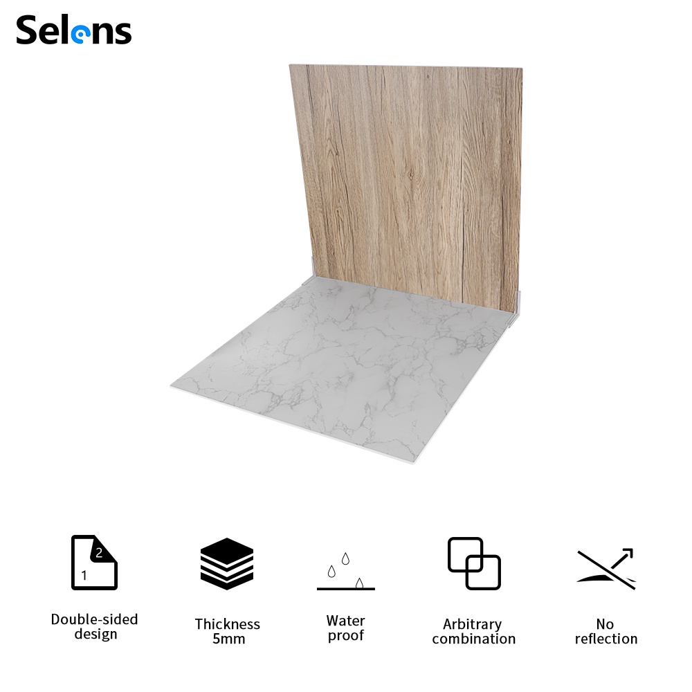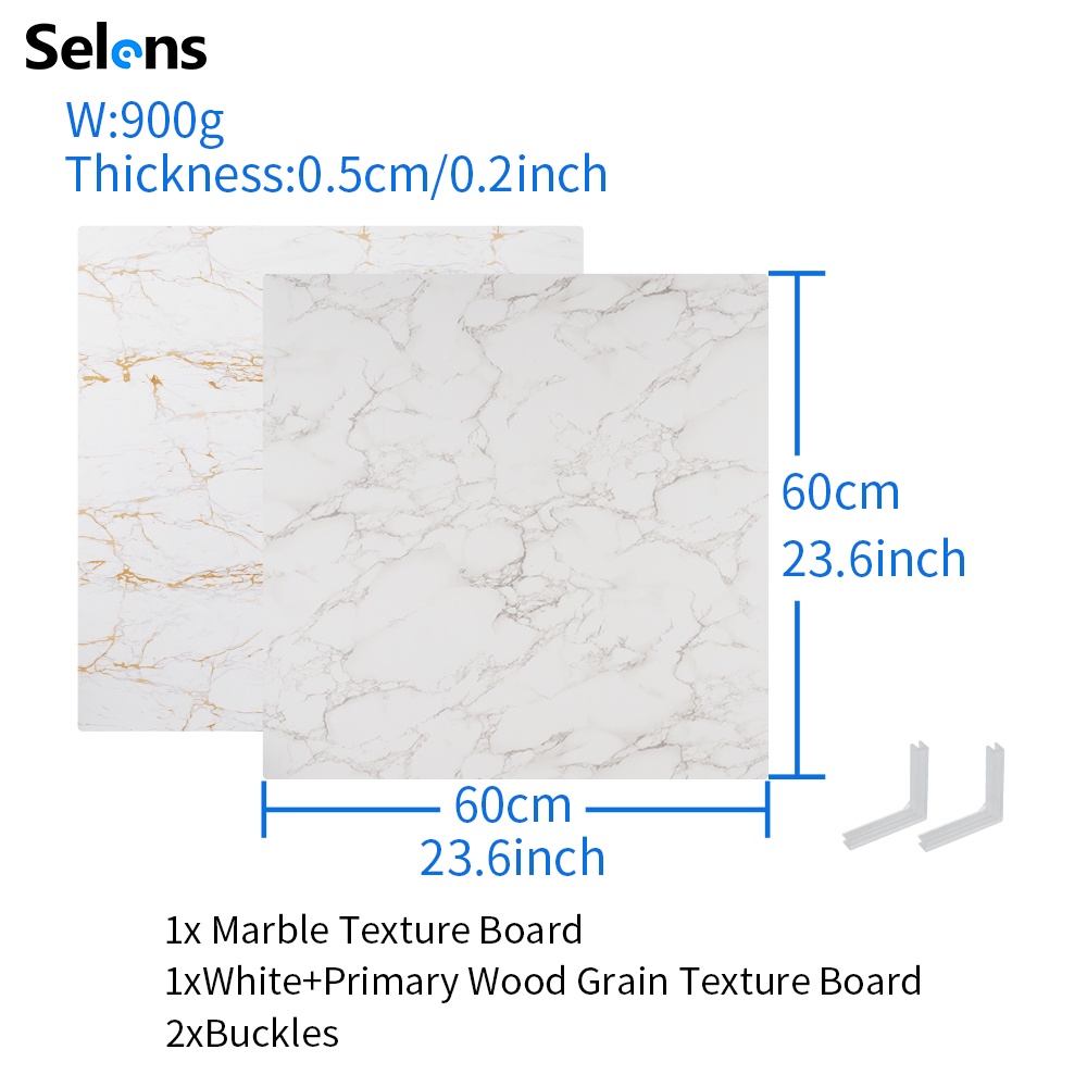 Selens 2PCS Photo Backdrop Boards Kit Double Sided White Marble Wood Texture Food Backdrops Tabletop Flat Lay Photography Backgrounds for Jewelry Cosmetics Small Product Props