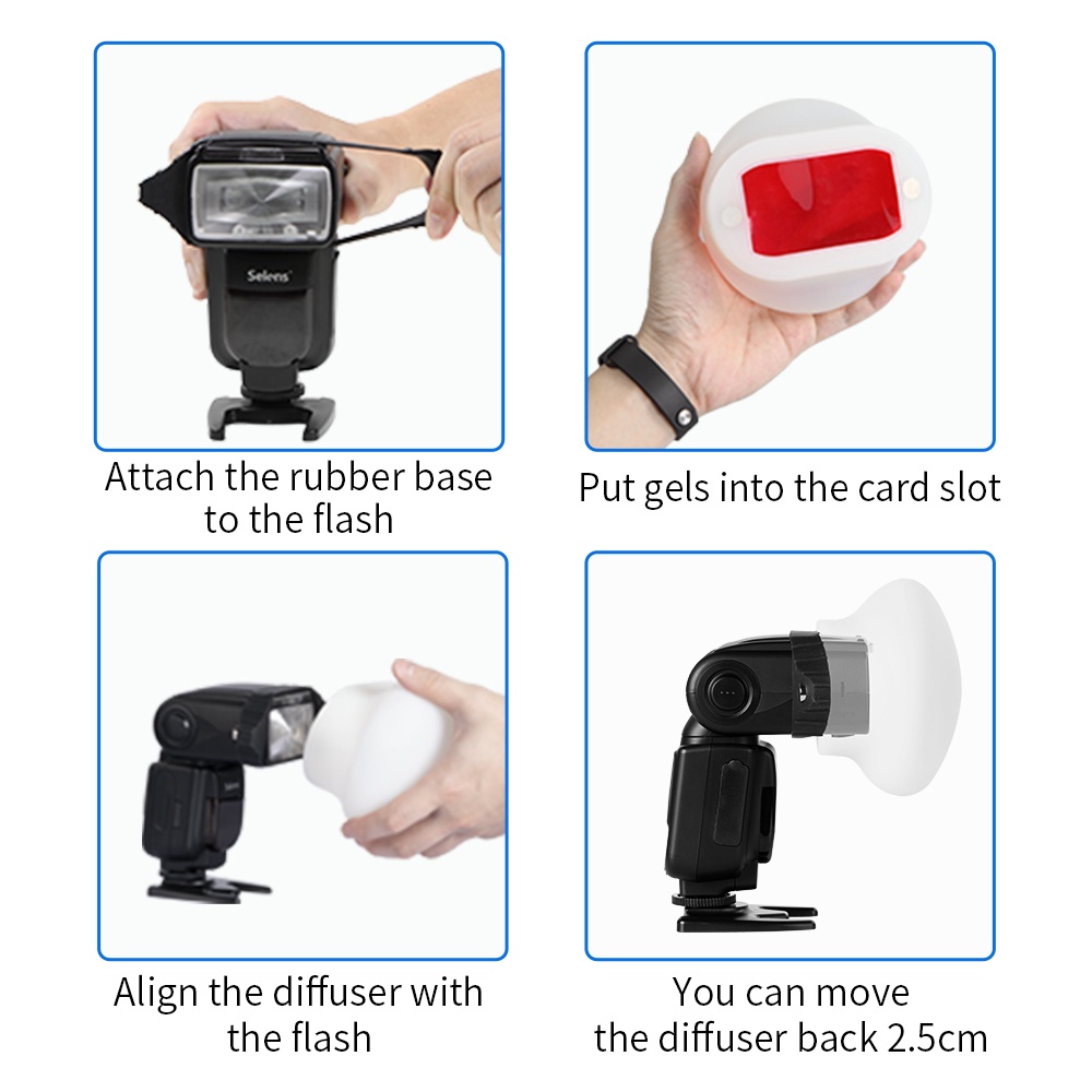 Selens 4in1 Magnetic Speedlight Diffuser Kit Flash Modifier Sphere + Adapter + Filter Gels Flash Accessories for Godox Canon Nikon Yongnuo Camera Speedlite