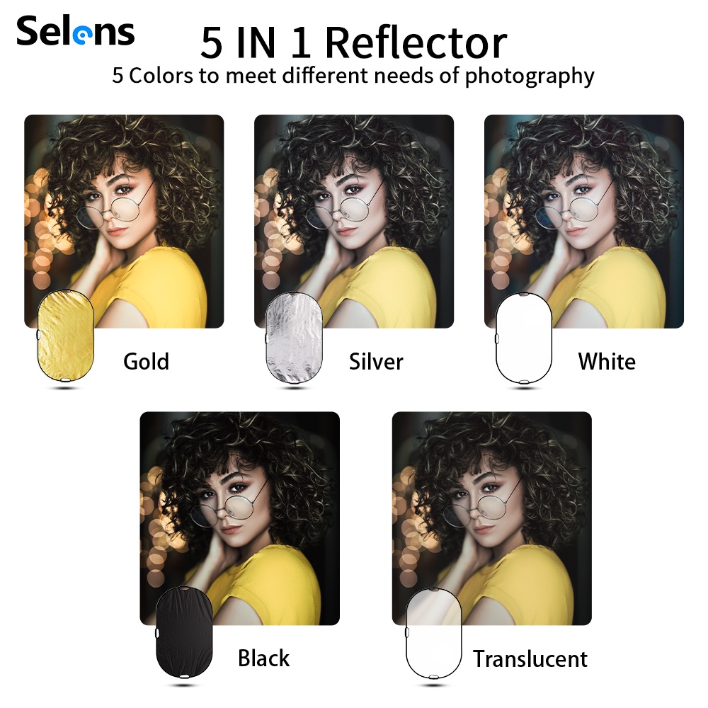 Selens 5 in 1 Light Reflector Photography Diffuser Collapsible Portable with Handle Lighting Gold/Silver/White/Black/Translucent 100x150cm for Photo Studio Indoor Outdoor Shooting