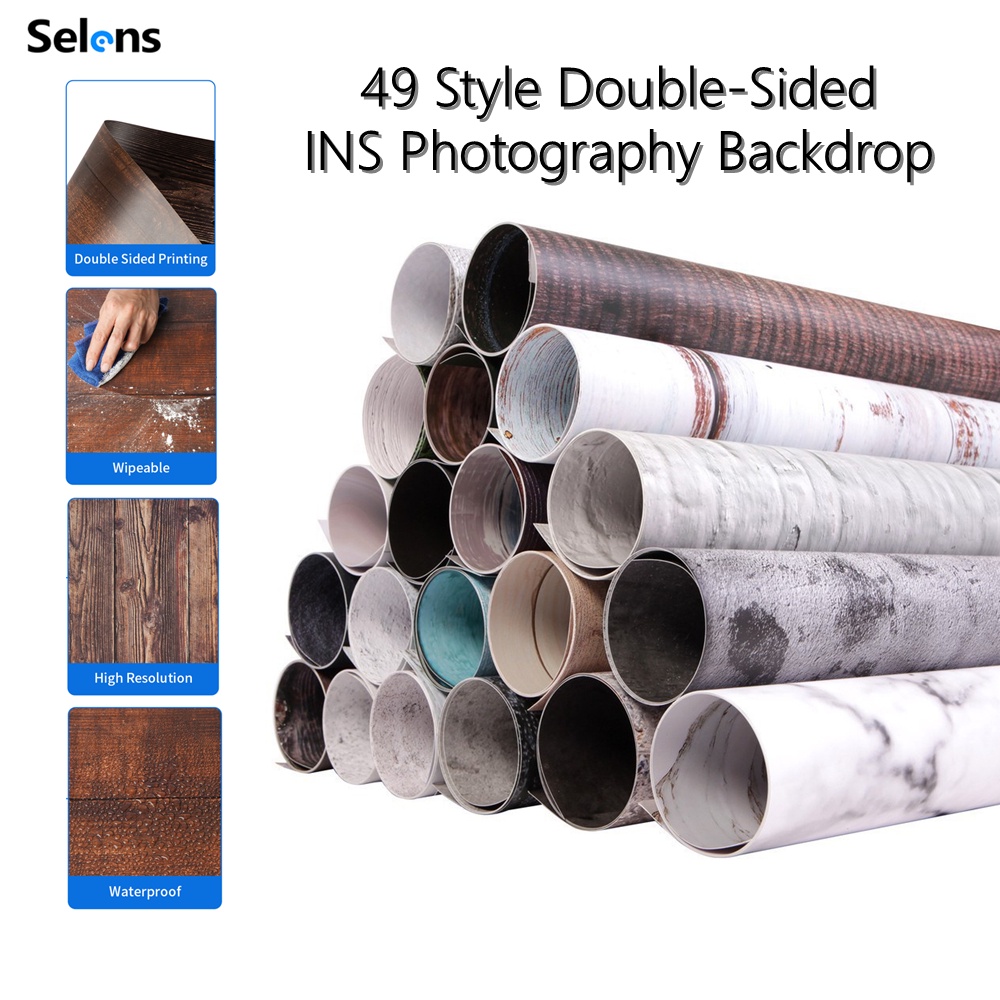 Selens Double Sides Photo Backdrop for Photographi Wood Marble Cement Wall Photography Background Paper 57x87cm