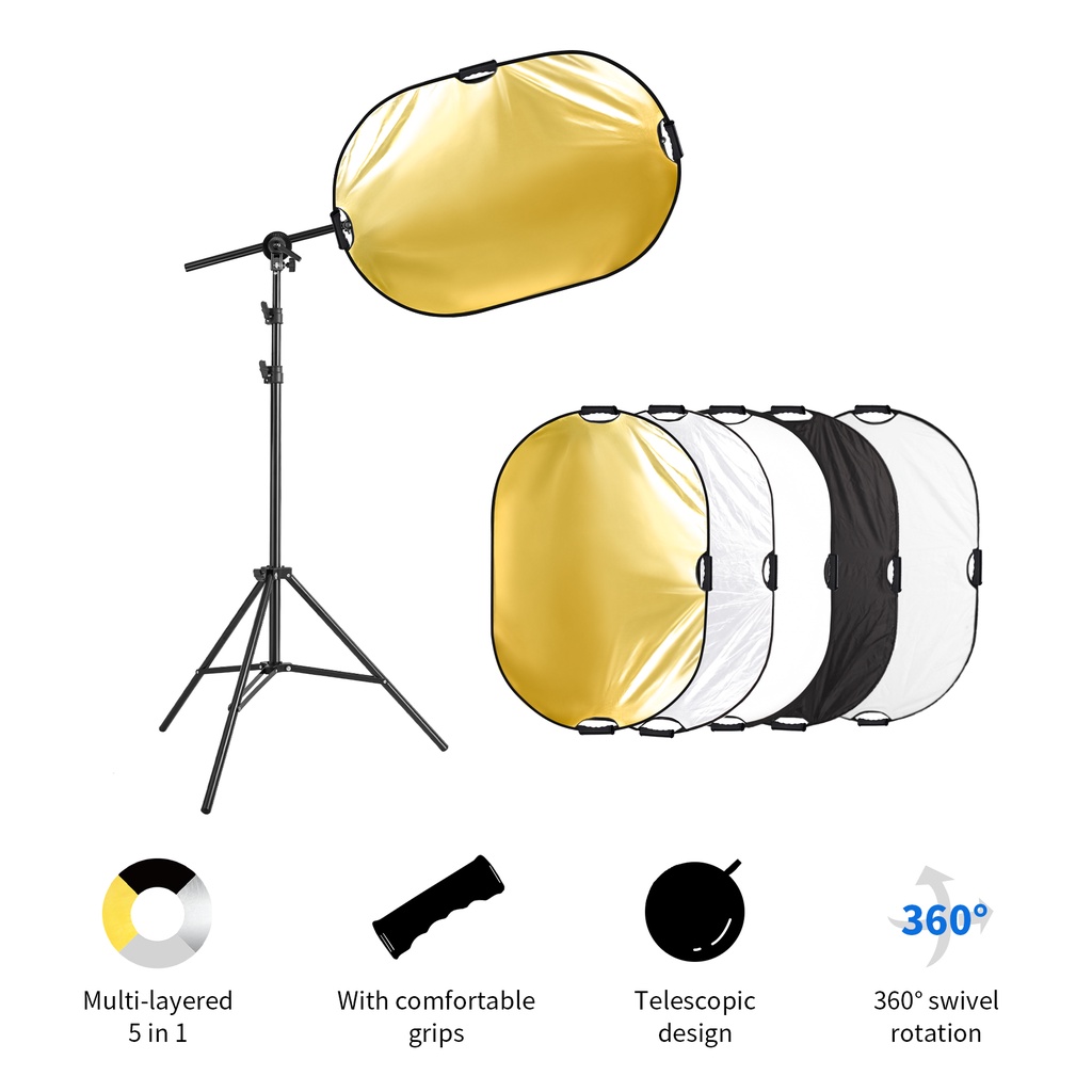 Selens 60x90cm Light Reflector Stand Kit 5-in-1 Collapsible Multi-Disc with Light Photography Stand & Reflector Holder Clamp for Photo Video Studio Outdoor Lighting