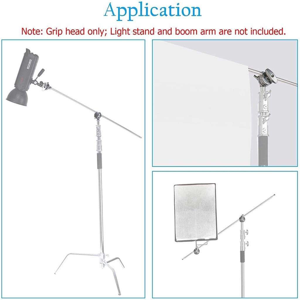 Selens Grip Head and Boom Arm for Light Stand Heavy Duty 2.5-inch Grip Head Swivel Head Holder Mounting Adapter for C Stand