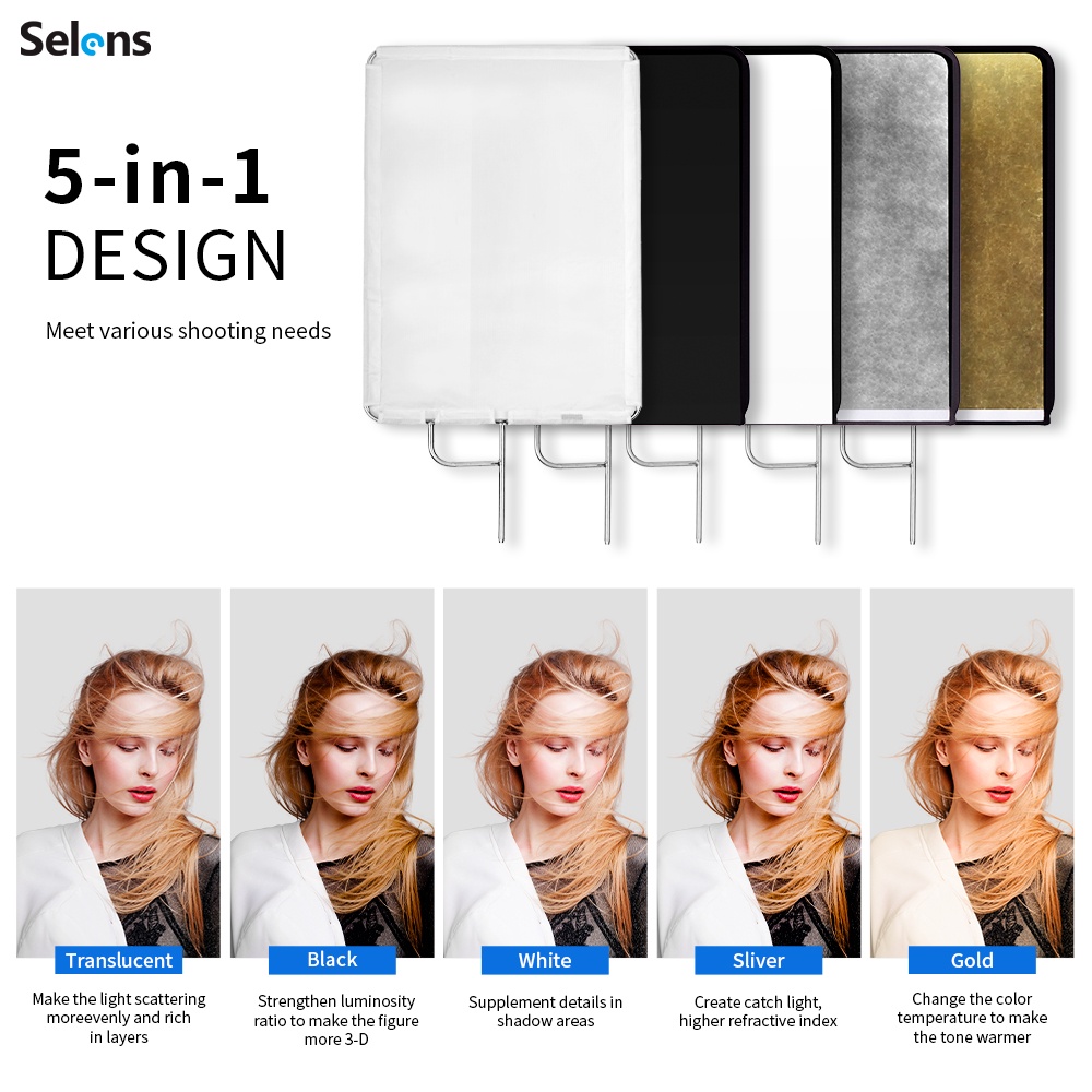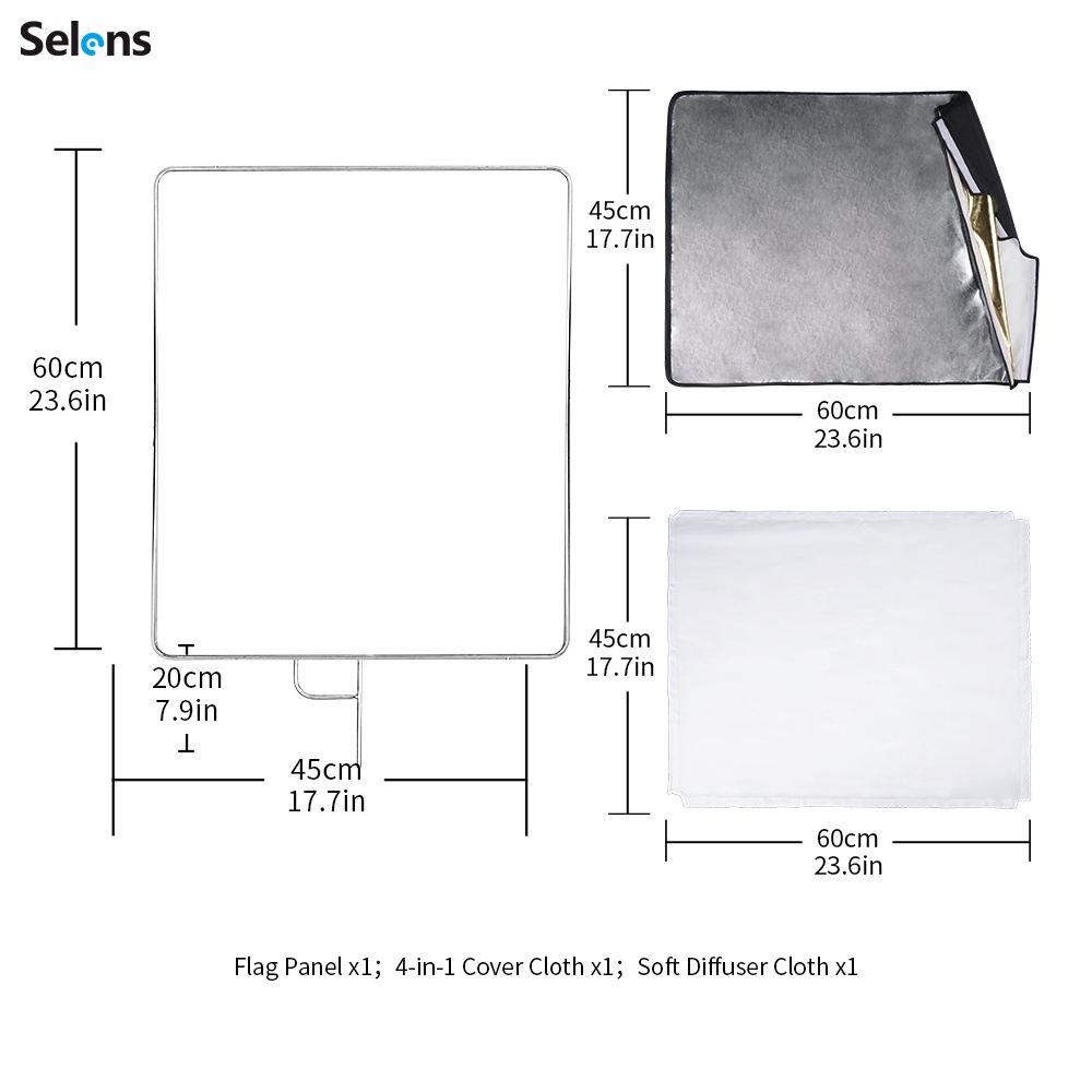 Selens Light Reflector Flag with Frame 45x60cm 5-in-1 Cover Cloth and Diffuser Magnetic Stainless Steel Flag Panel Reflector Diffuser for Studio Photography Lighting