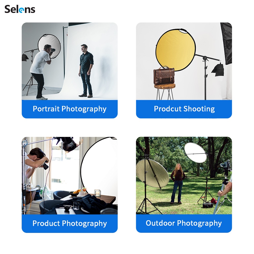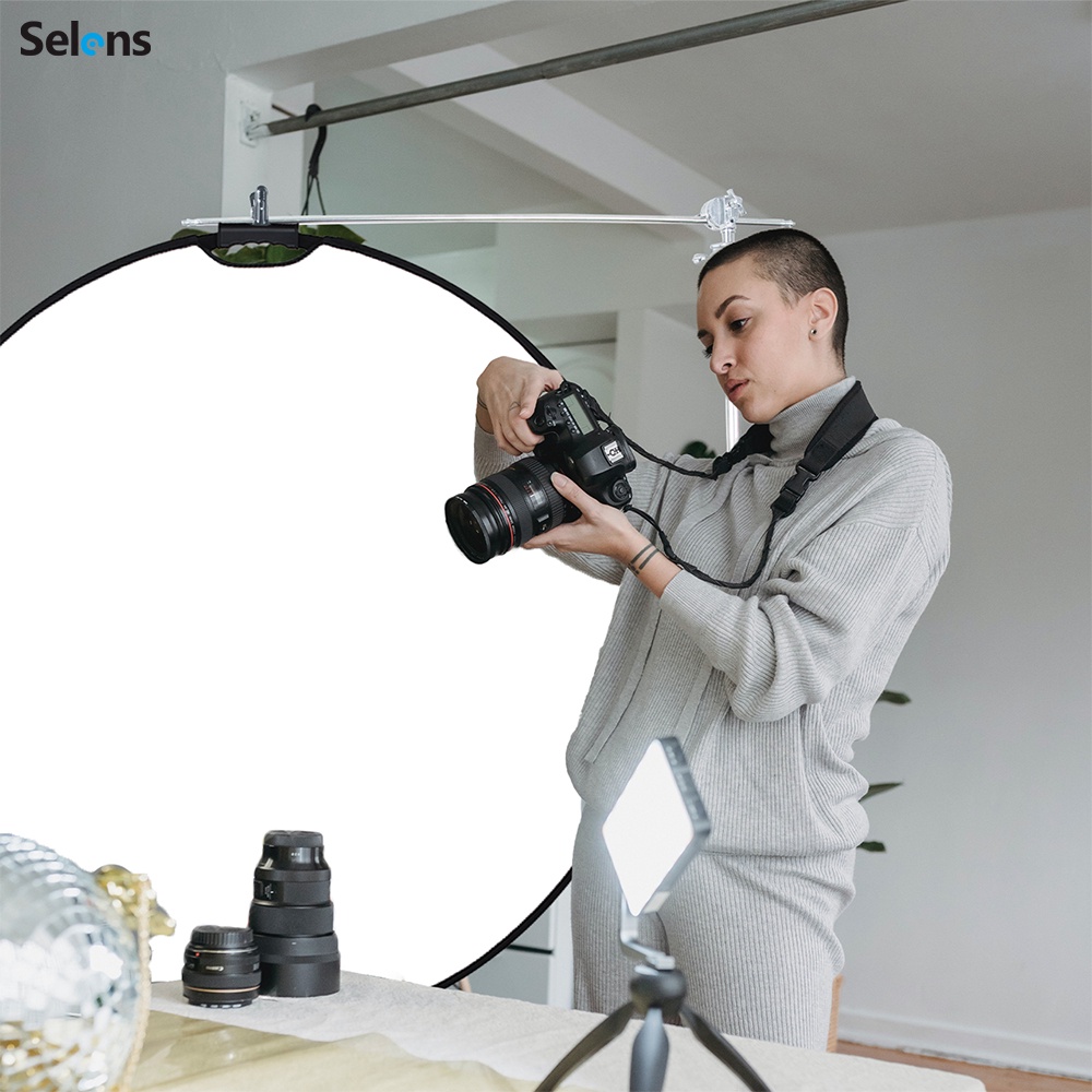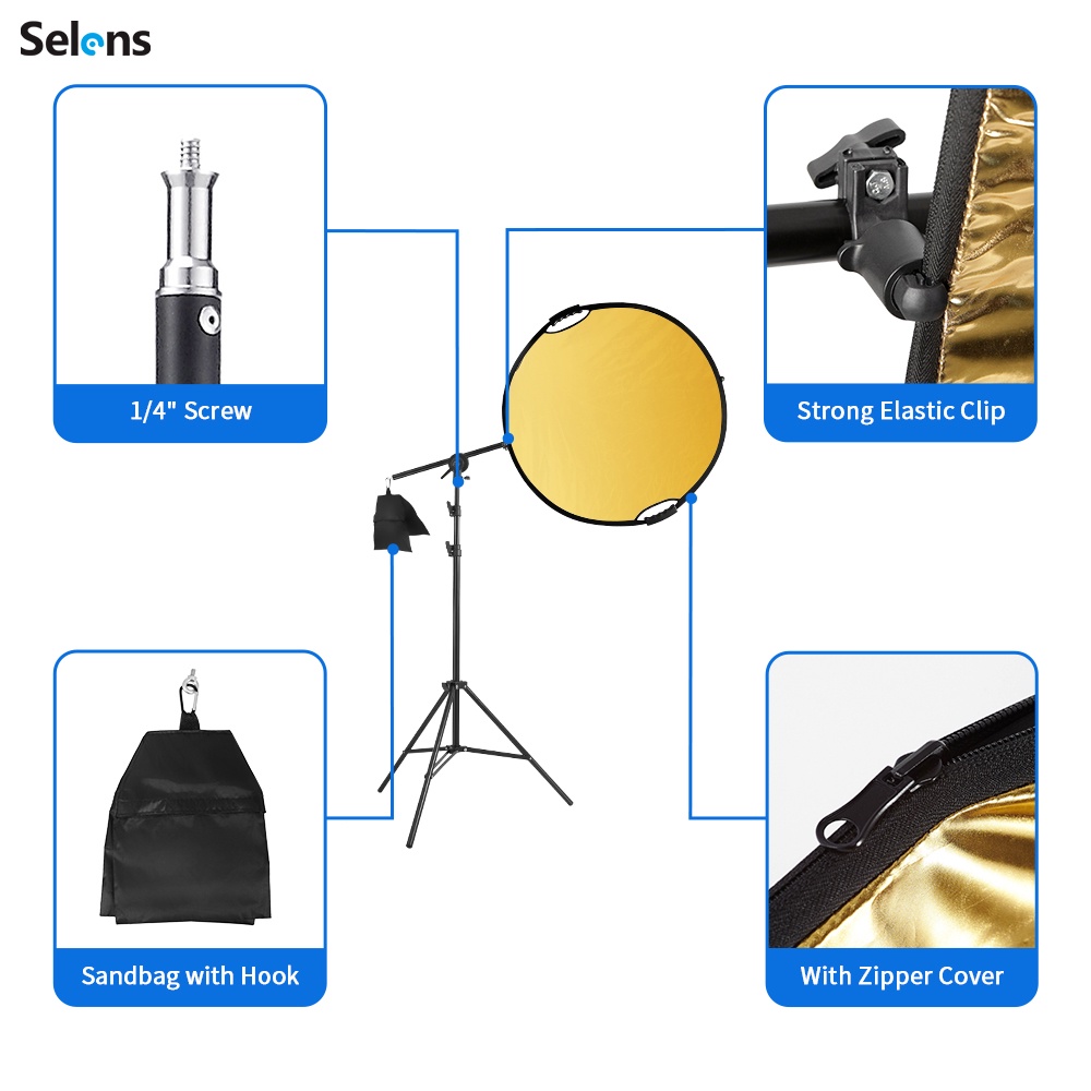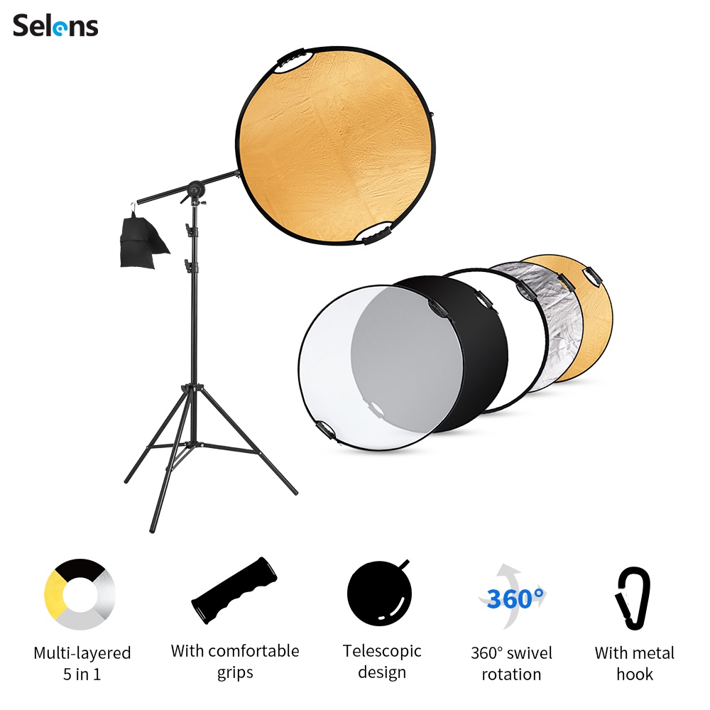 Selens Photography Reflector Holder Stand Kit 32in / 80cm 5-in-1 Collapsible Light Reflectors with Swivel Boom Arm Stand and Sandbag for Photo Video Studio Lighting
