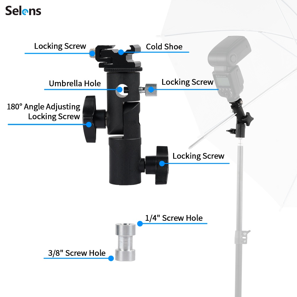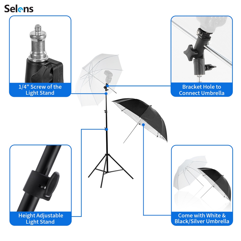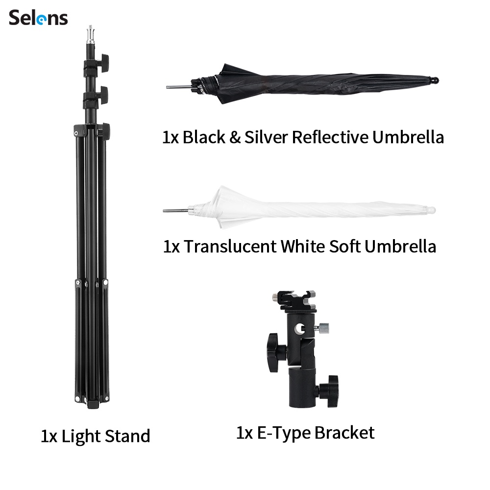 Selens Photography Umbrella Light Stand Flash Bracket Mount Kit with 33" White Soft Diffuser & Black/Silver Reflective Umbrella for Photo Studio Video Shooting