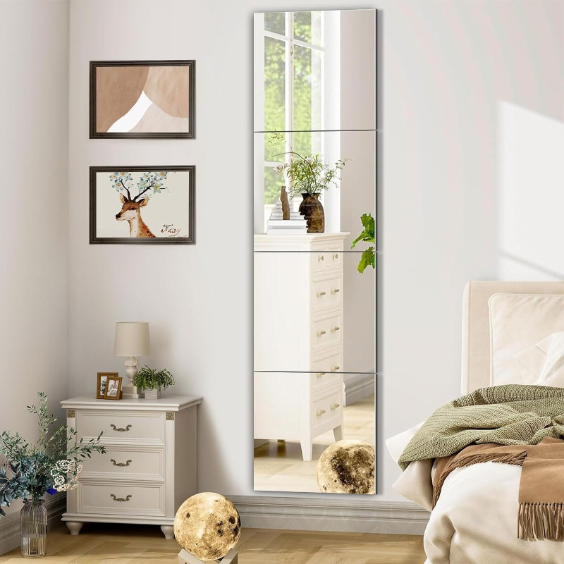 Self Adhesive Acrylic Frameless Mirror - Wall Decor - Mirror Tiles - Mirror Sheets - Mirror Sticker - Flexible, High-definition Imaging - 20cm*20cm - for Gym, Bedroom, Living Room