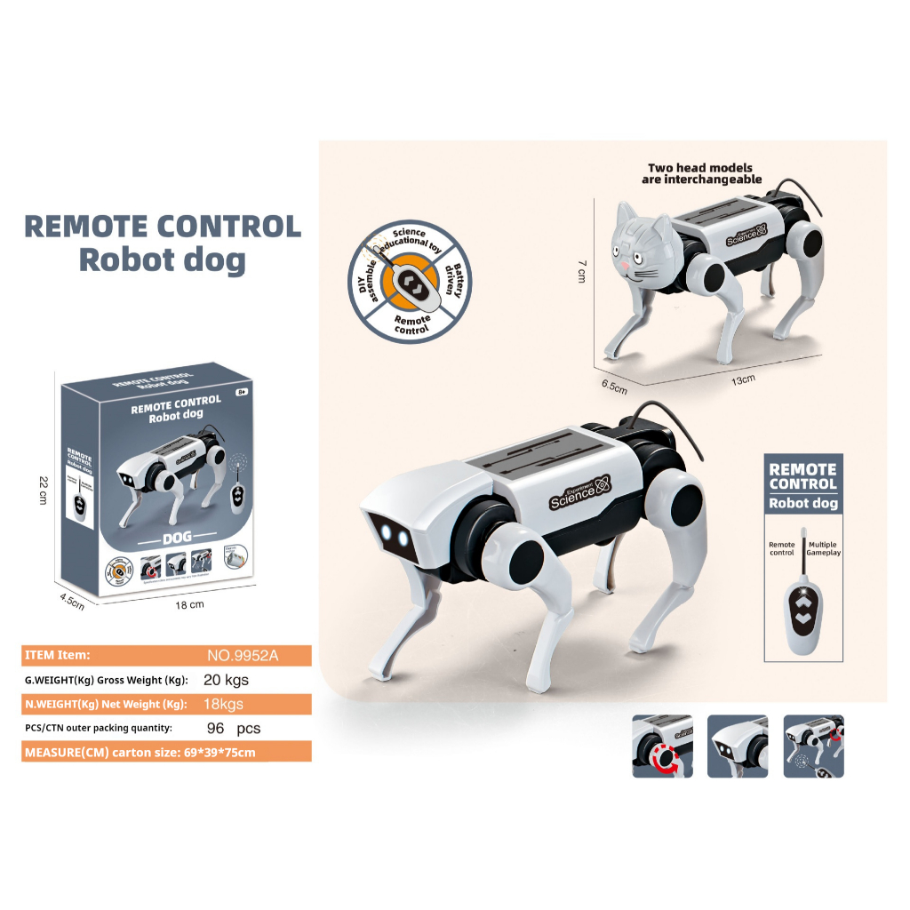 Self-Install DIY Intelligent Robot Dog Toys Solar Powered Assembly Robot dog Smart Sensor dog toys