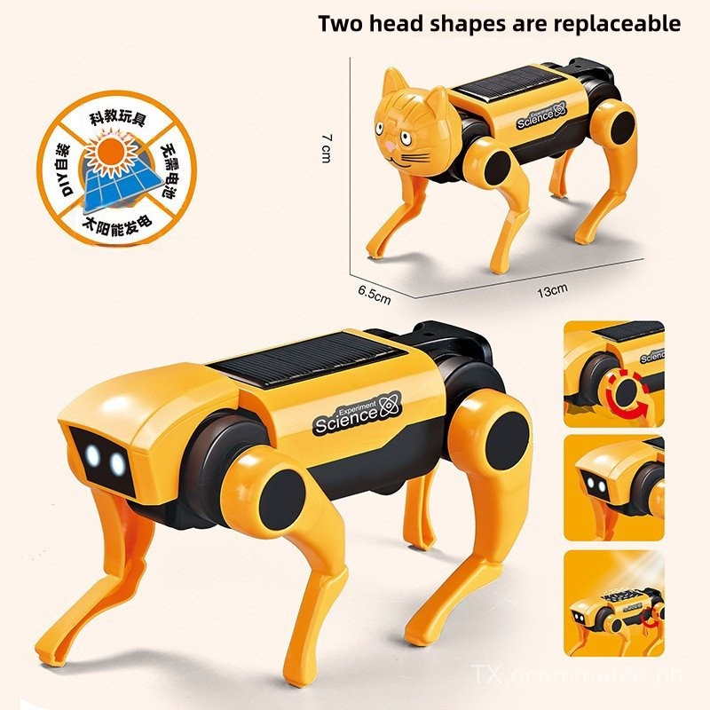 Self-Install DIY Robotic Kit Solar Powered RC Electric Robot Dog Intelligent Robot Dog Robot Cattle Toys Educational Toy Robotical Dog Cattle Kit Students Science Experimen IS7A