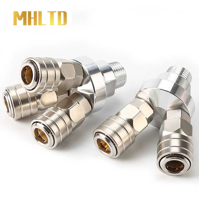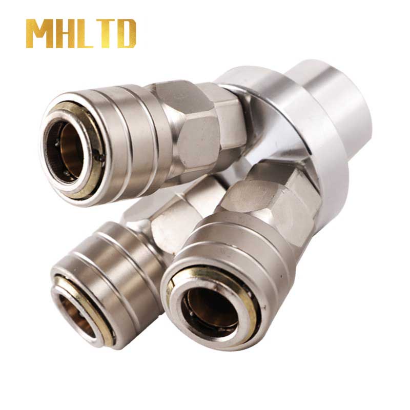 Self Locking Air Hose Quick Connect Coupler Fitting 2 way 3 Way 1/4'' Female Air Compressor Coupling Tool (3 Ways) High-quality