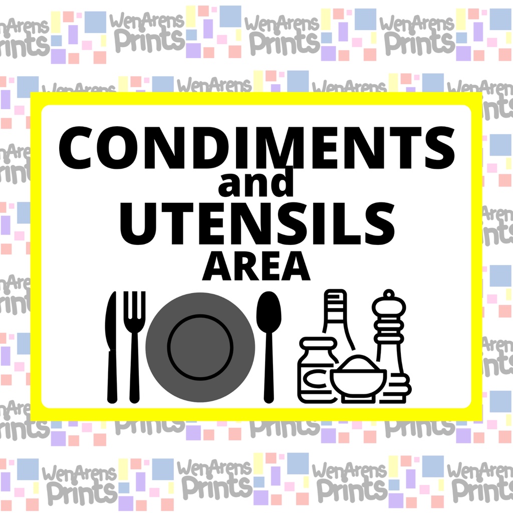 Self Service Condiments Utensils Area A4 Size PVC Plastic, Laminated & Waterproof Sticker Signs