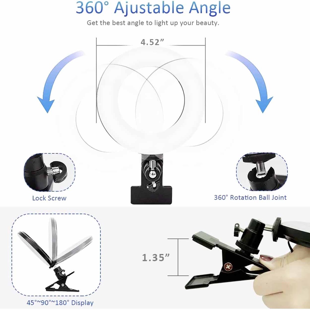 Selfie Ring Light Clip On Laptop Computer Monitor Video Conference Lighting Kit (16cm)