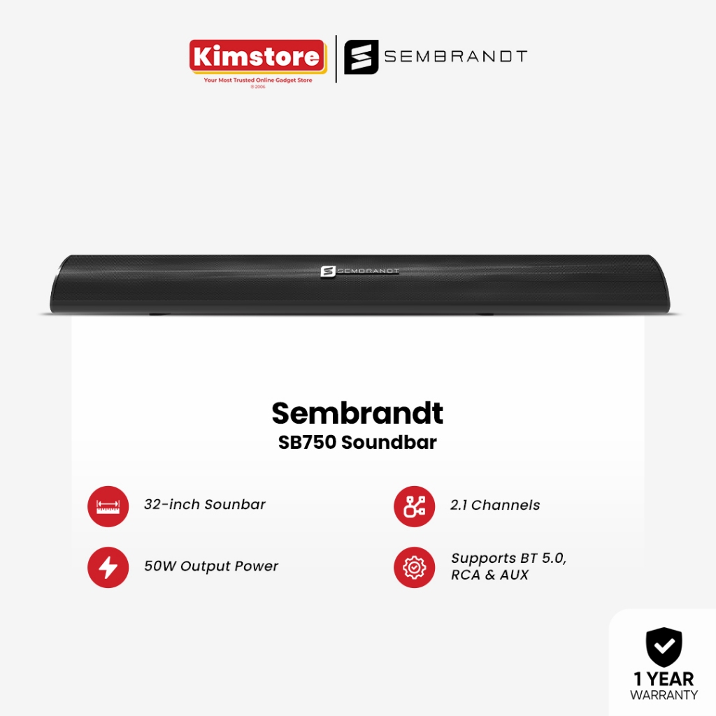 Sembrandt SB750 TV Soundbar with Built-In Subwoofer - Bluetooth
