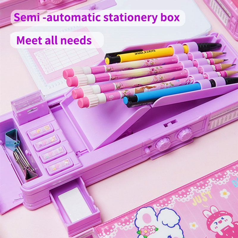 Semi Automatic Stationery Pencil Case Box Function Gel Pen Holder With Combination Lock For Girls LE