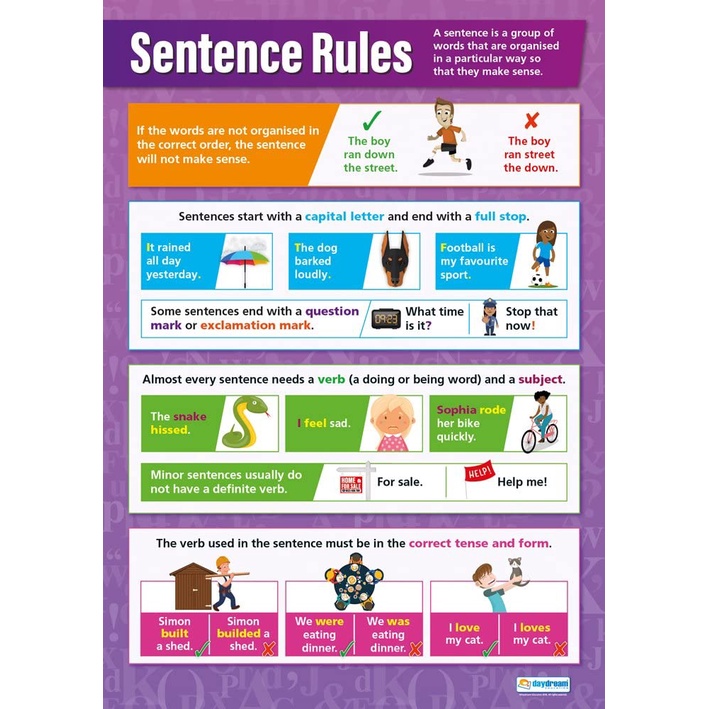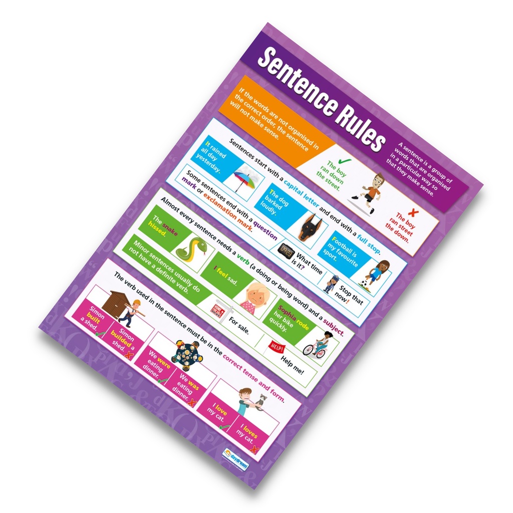 Sentence Rules English Educational Laminated Chart, A4 Size