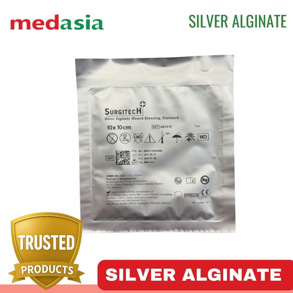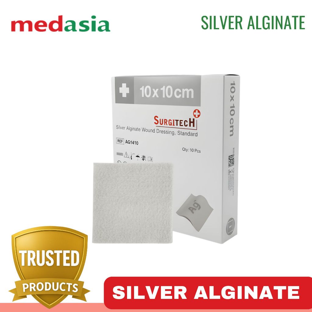 Surgitech Silver Alginate Wound Dressing Pad 10x10cm Bed Sores, Ulcers, Diabetic Wounds