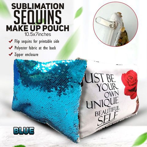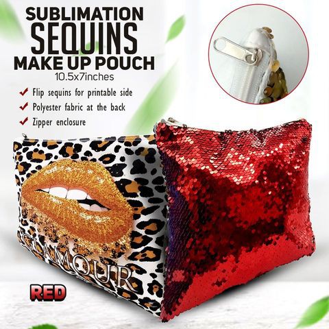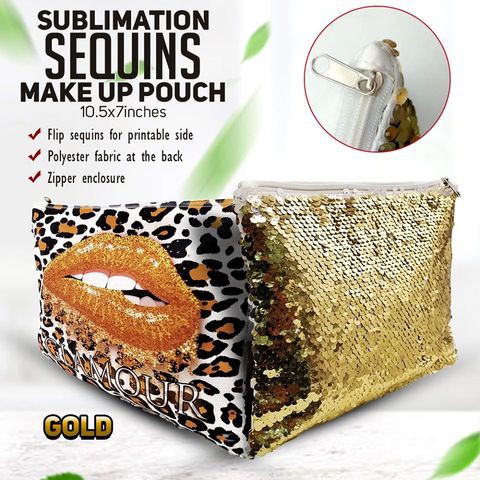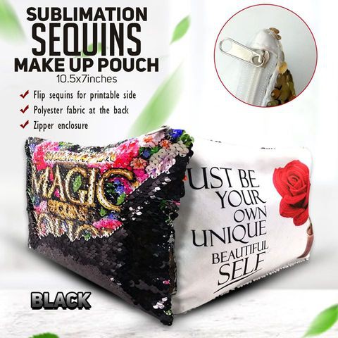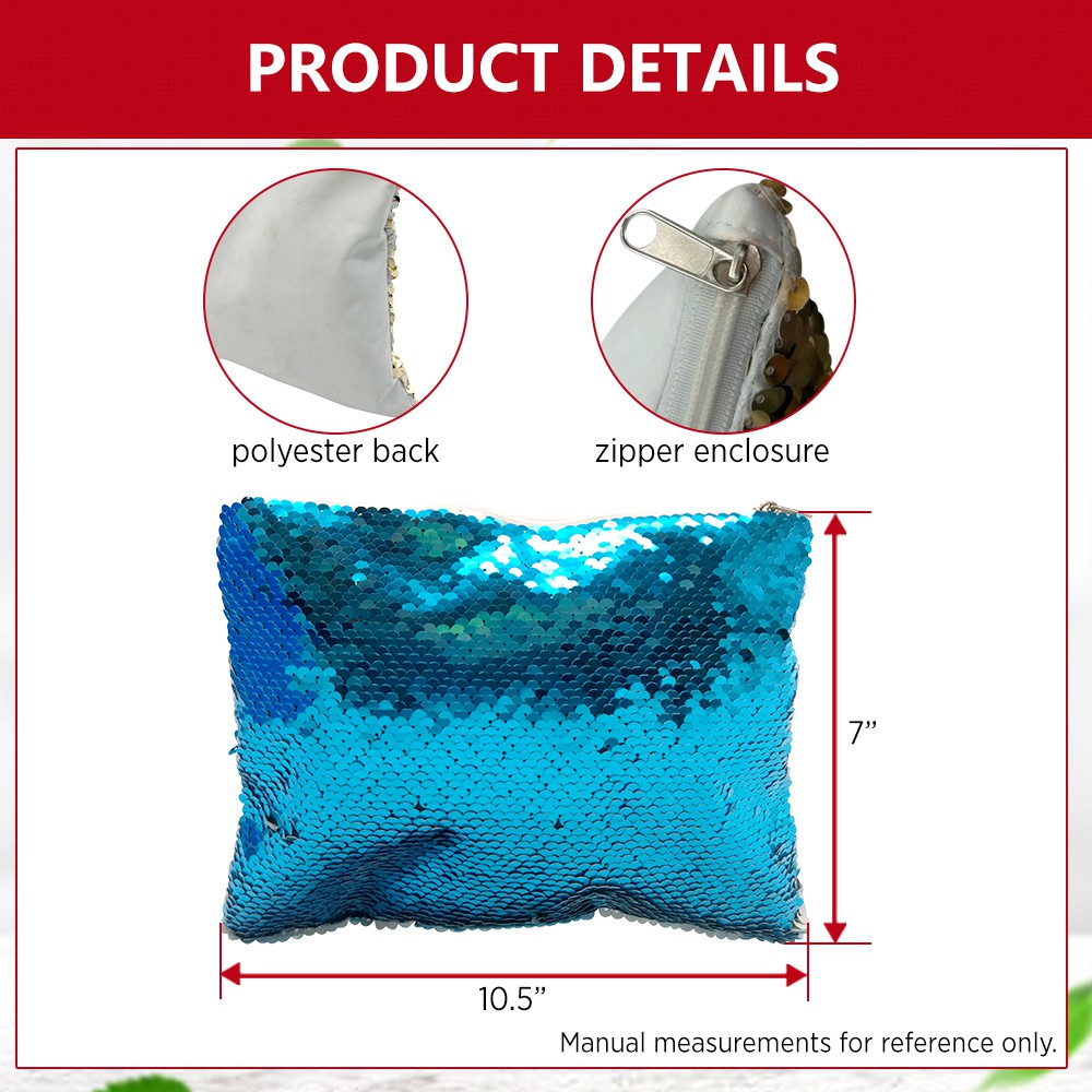 Sequins Make-up Pouch with Polyester Back for Sublimation DIY Design Printing (10.5x7inches)