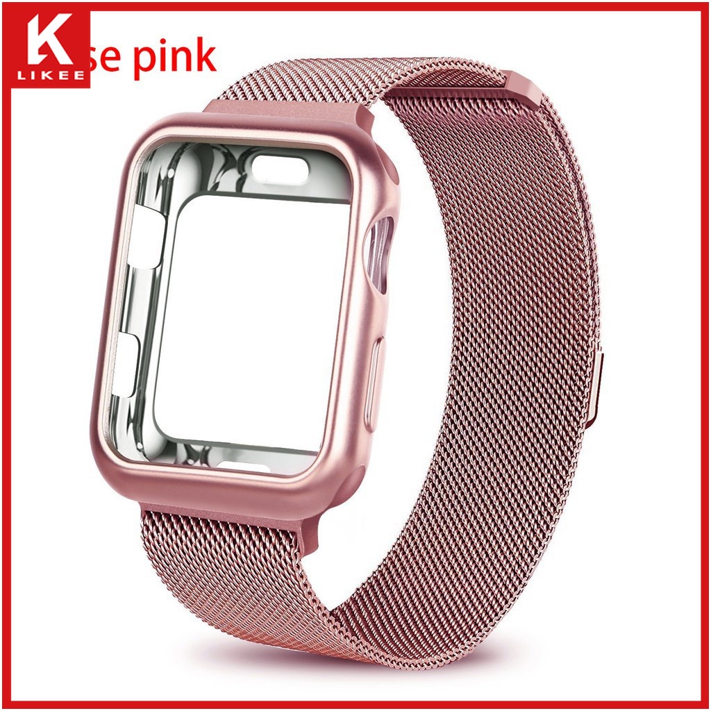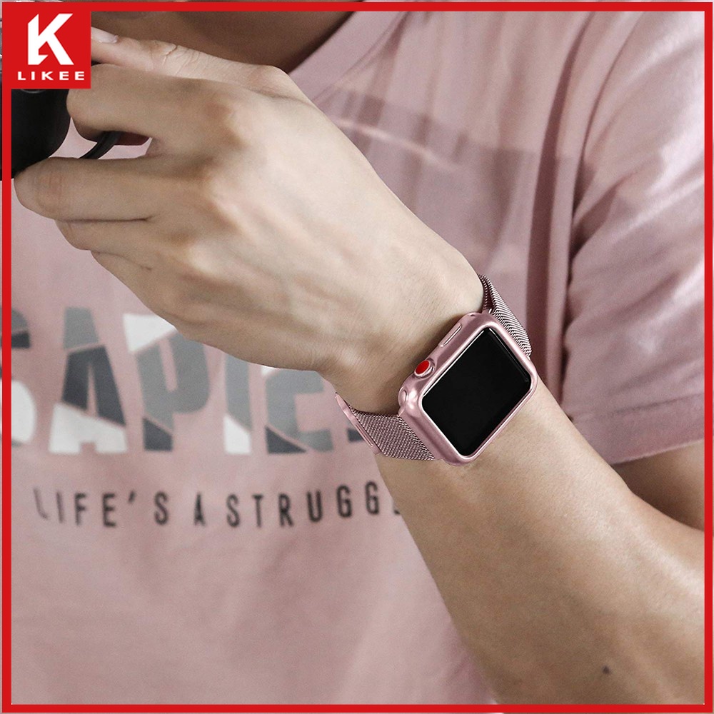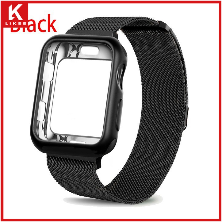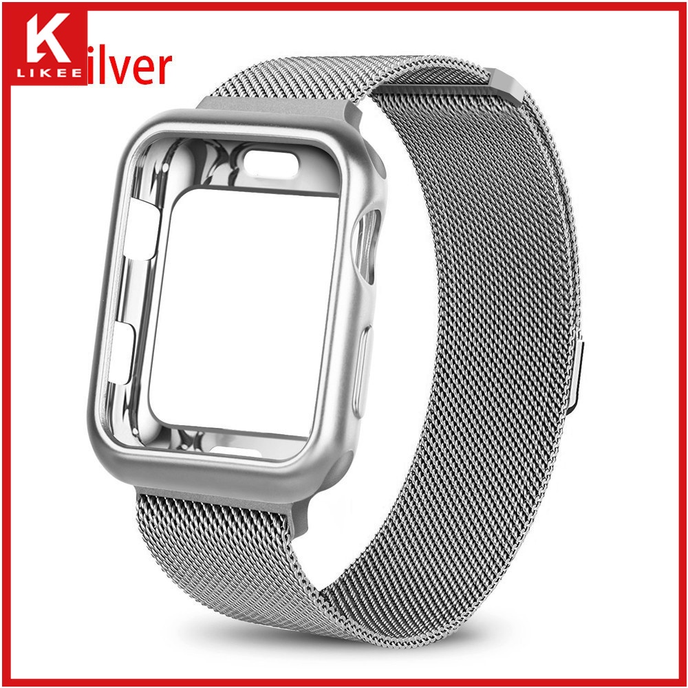 Series 7 6 5 4 3 2 1 SE In stock case + strap 2 in 1 Stainless steel loop strap suitable for Apple Watch Strap Cover iwatch 41mm 45mm 38mm 40mm 42mm 44mm smart watch strap case