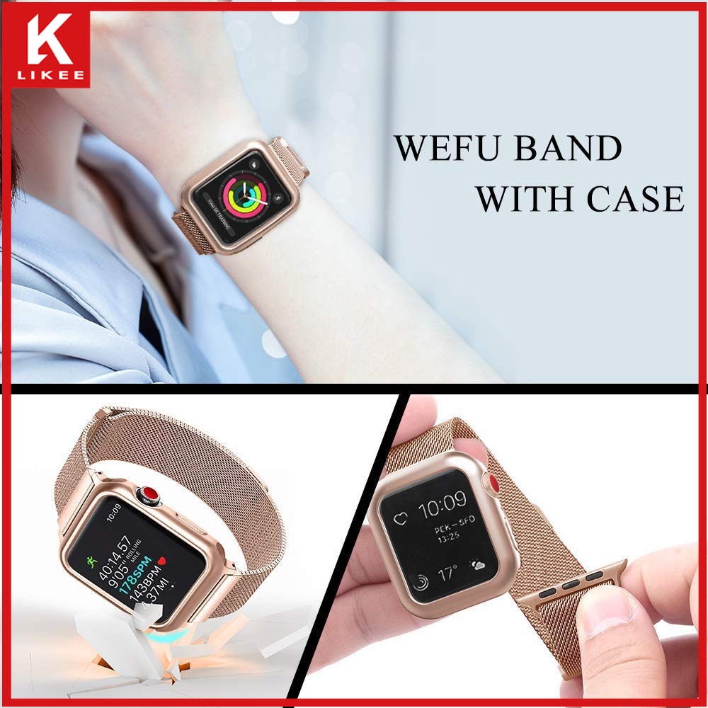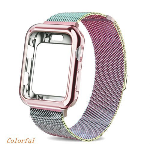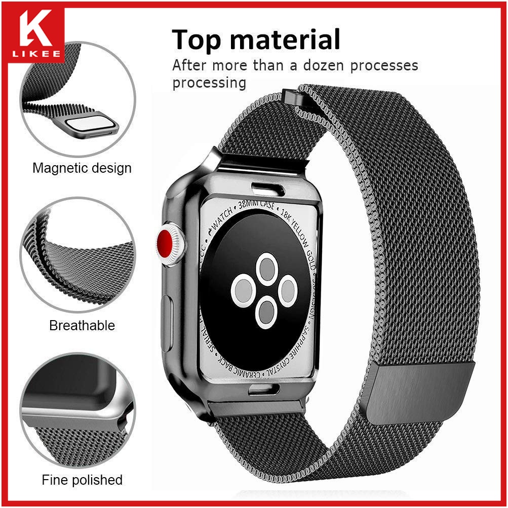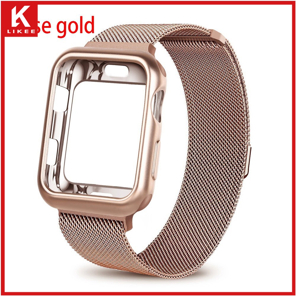 Series 7 6 5 4 3 2 1 SE In stock case + strap 2 in 1 Stainless steel loop strap suitable for Apple Watch Strap Cover iwatch 41mm 45mm 38mm 40mm 42mm 44mm smart watch strap case