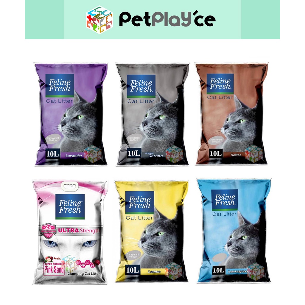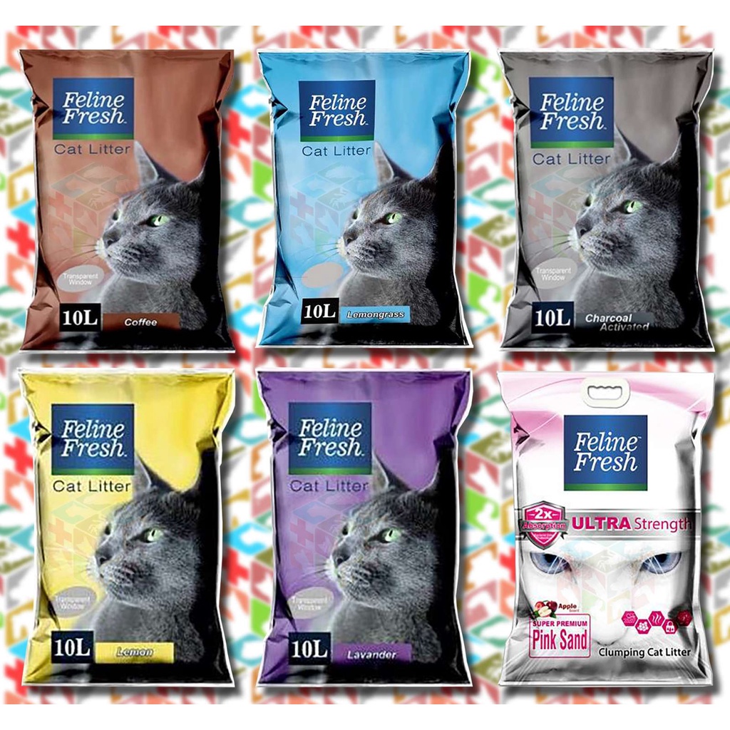 Feline Fresh Cat Litter Zeolite 15.5lbs Bentonite 10L Clumping Lavender Lemon Grass Coffee Charcoal