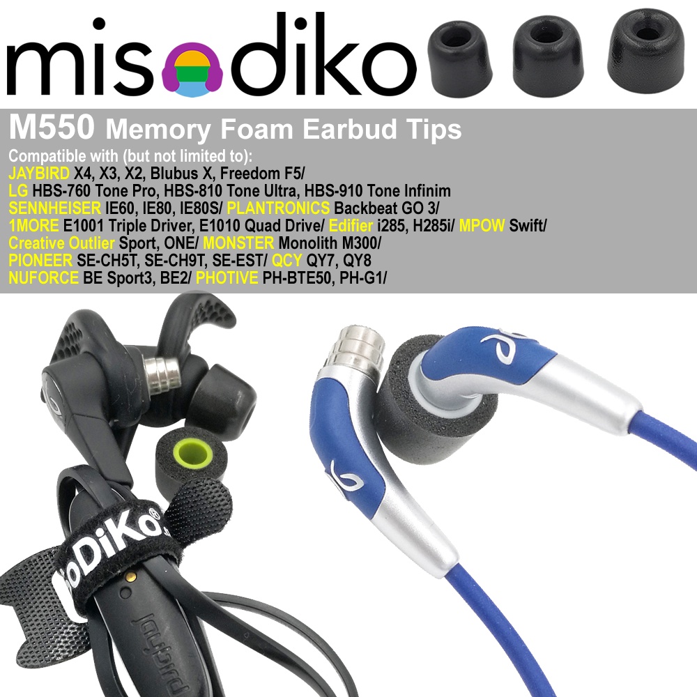 misodiko M550 Memory Foam Replacement Eartips for Jaybird X4 X3 X2/ BlueBuds X/ Freedom F5 Earphones