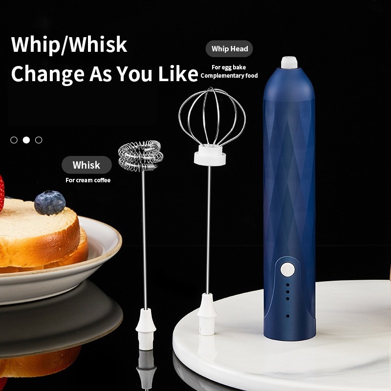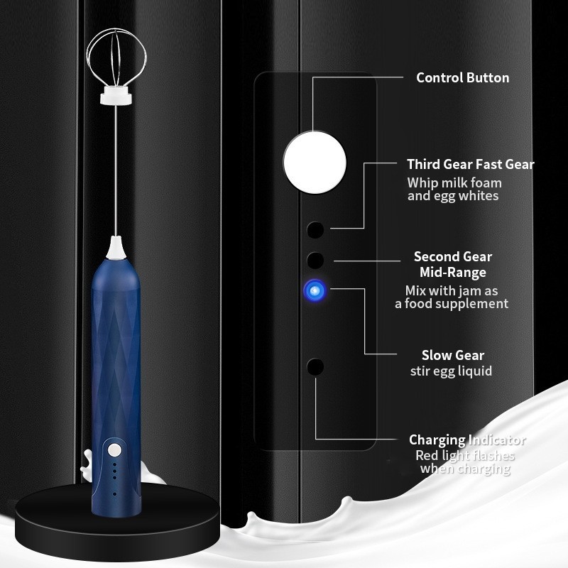 3-Speed Electric Coffee Mixer USB Charging Egg Beater Rechargeable Milk Frother Shaker Maker Foamer