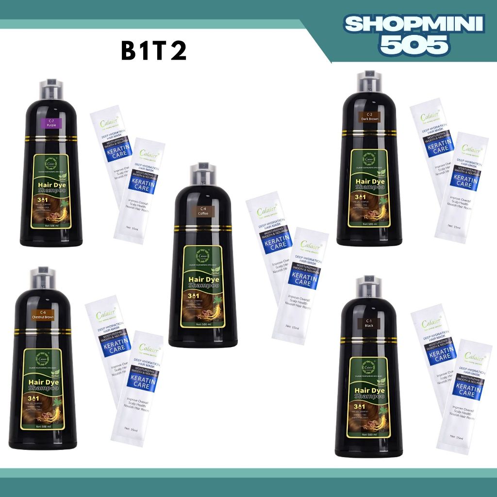Buy 1 Get 2 Herbal Hair Dye Shampoo in Black Brown or Coffee 500ml with Free Accessories