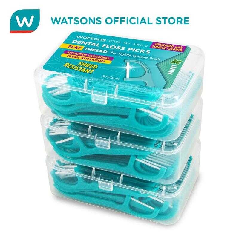 3 Asz-080 Watsons Flat Thread Mint Dental Flossers Loose Box 50S X3 535