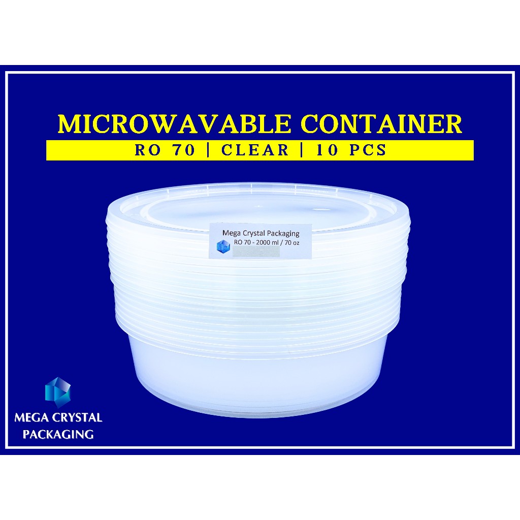 [ 10 Pcs ] Microwavable Container Round RO 70 - Round 2000 ml / 70 oz CLEAR