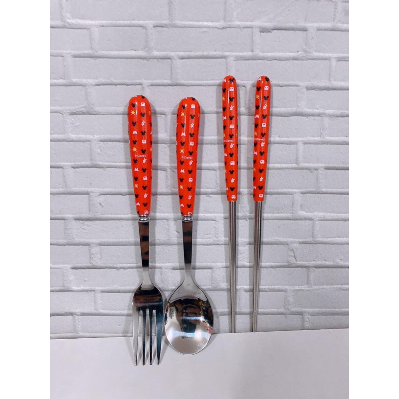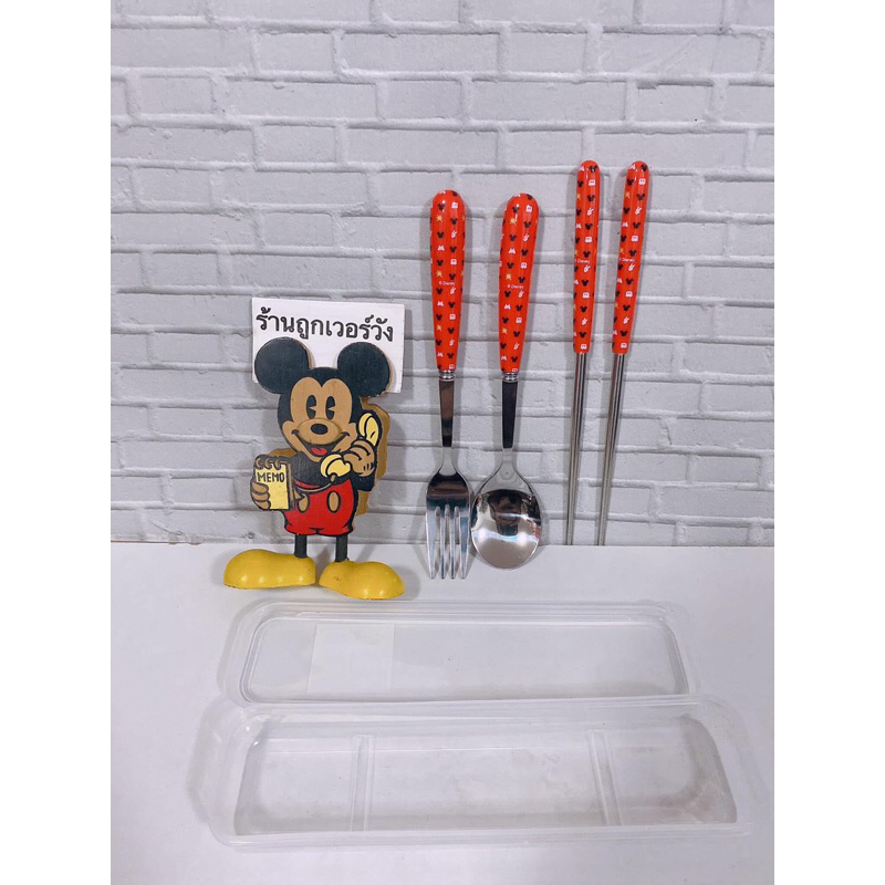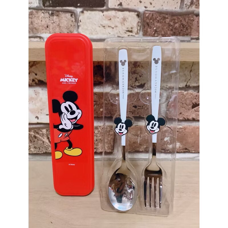 Stainless Steel Spoon And Fork Set With Box Mickey Mouse Pattern