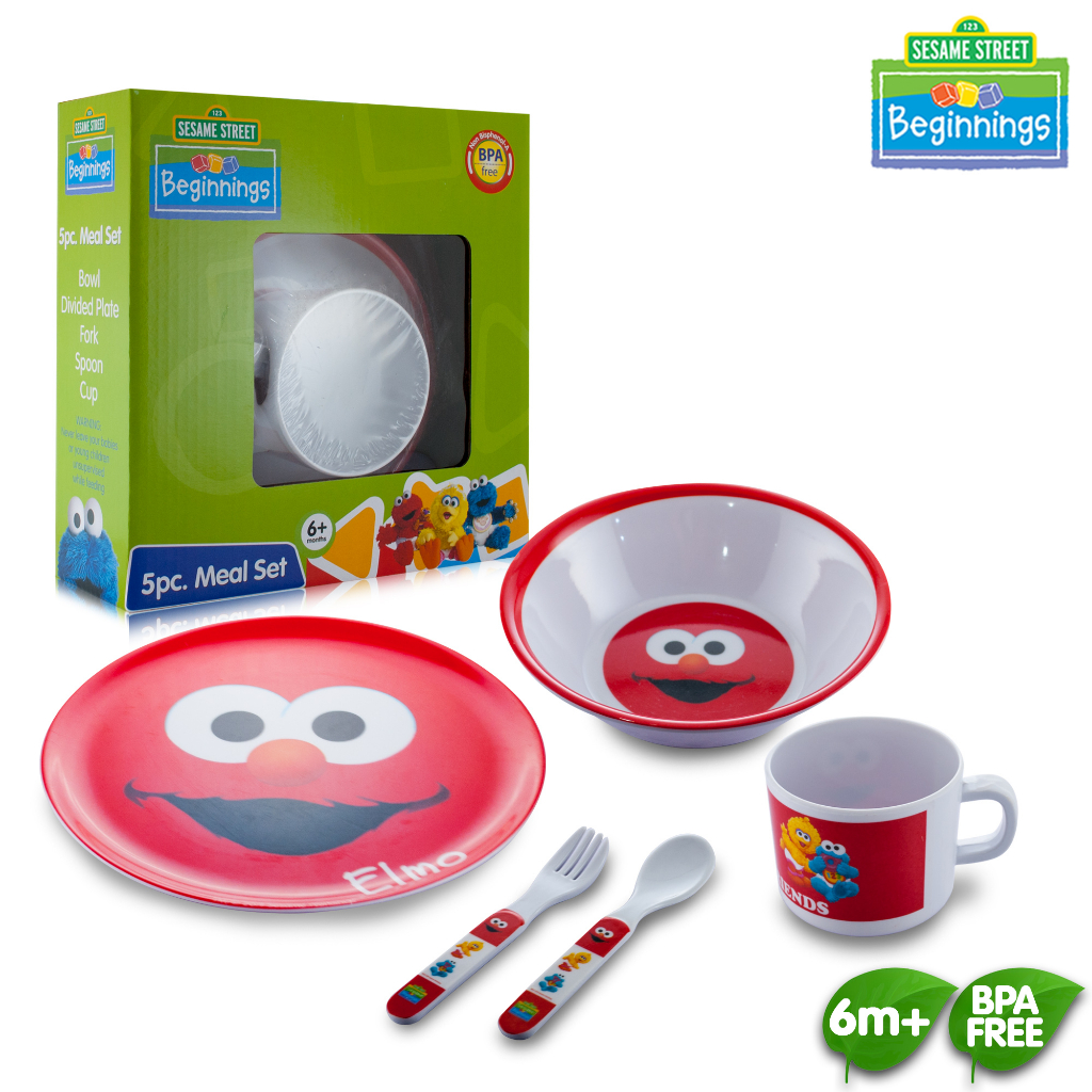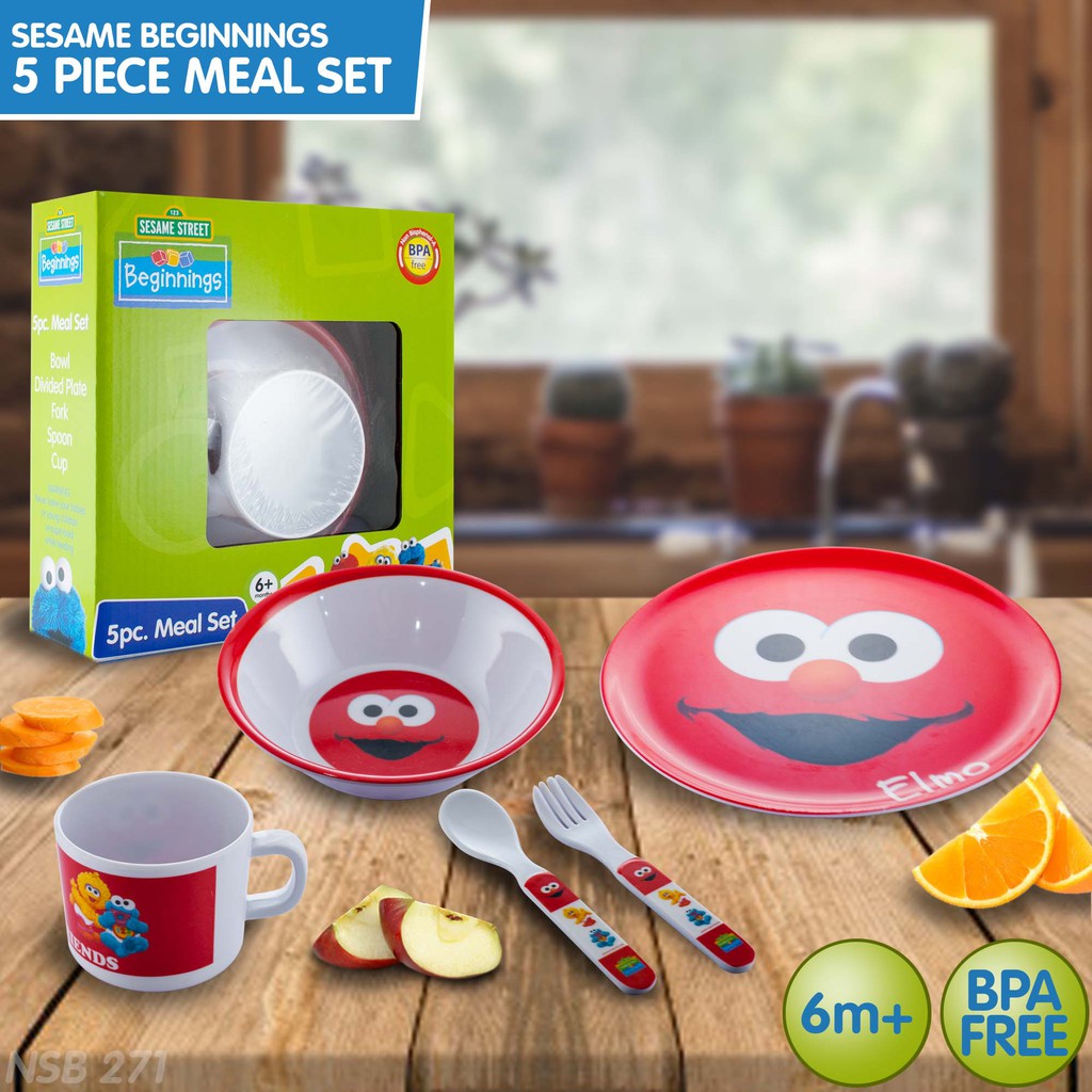 Sesame Beginnings 5pc Meal Set for 6months old baby elmo design plate for your baby meal set