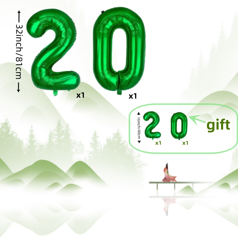 Set, 32 inch green number 20 aluminum foil balloon as a gift, 16 inch green 20 balloon for 20th birthday party 20th anniversary decoration, New Year decoration, theme event decorat