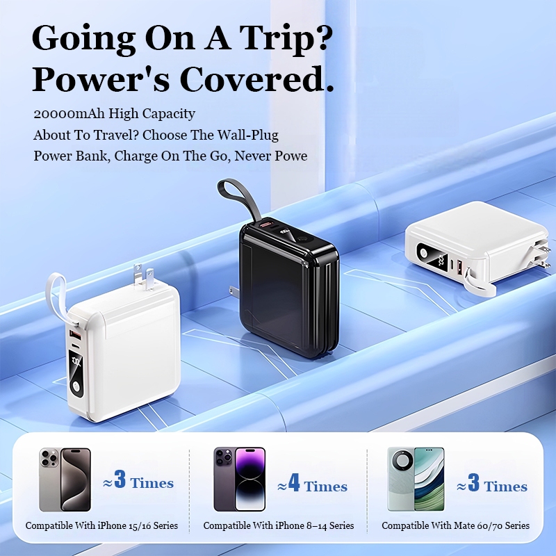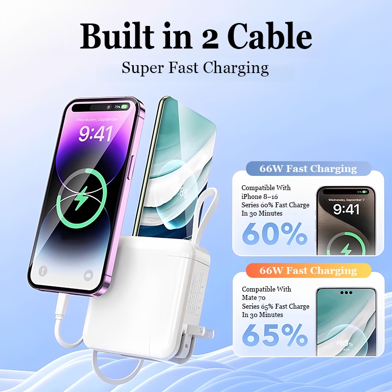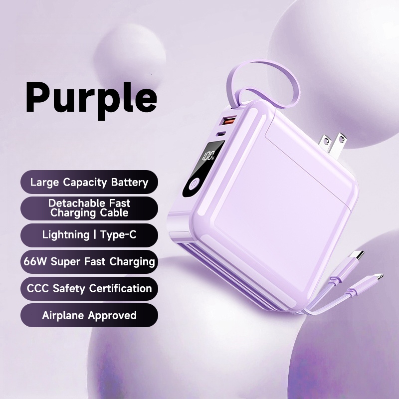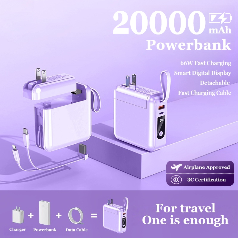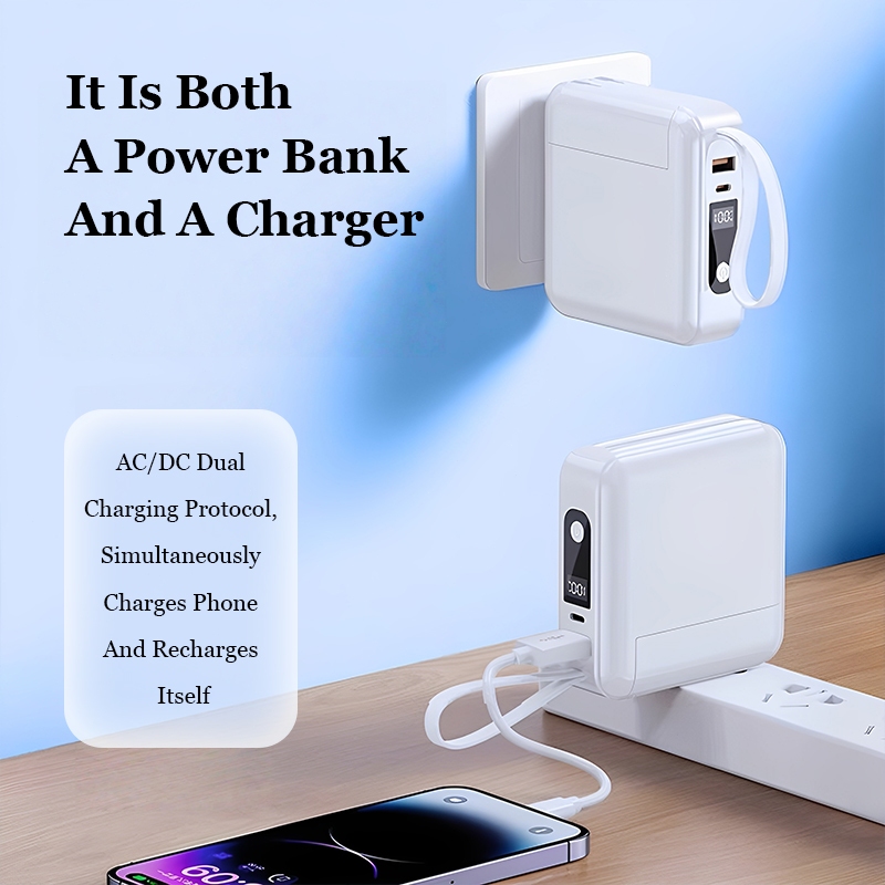 Xiaom 20000mAh Powerbank Fast Charging 2in1 Type C iPhone Digital Display Built in AC Plug Cable