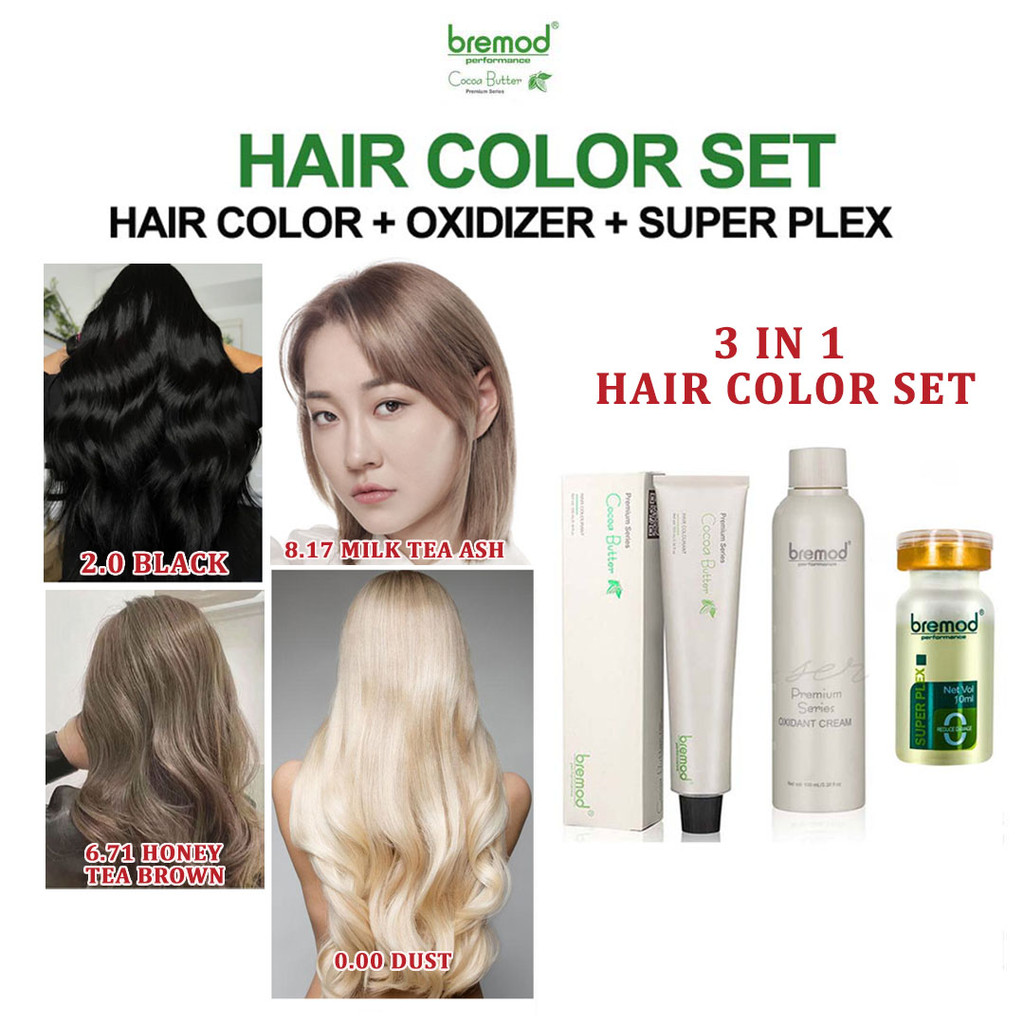 Bremod Premium Series Hair Color+Oxidizer+Superplex 3 IN 1 Set Colour Cream with Oxidizing Set